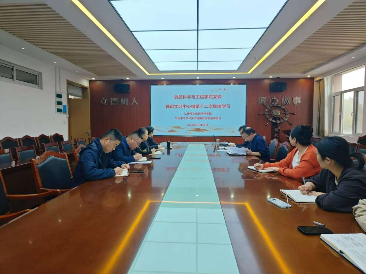 10月30日,太阳集团城娱8722党委理论学习中心组召开2025年第十二次集体(扩大)学习会议,围绕弘扬伟大抗战精神及习近平总书记关于总体国家安全观的重要论述开展学习研讨,学院党委书记车广杰主持会议,学院理论学习中心组全体成员、科级干部参加学习会议。
