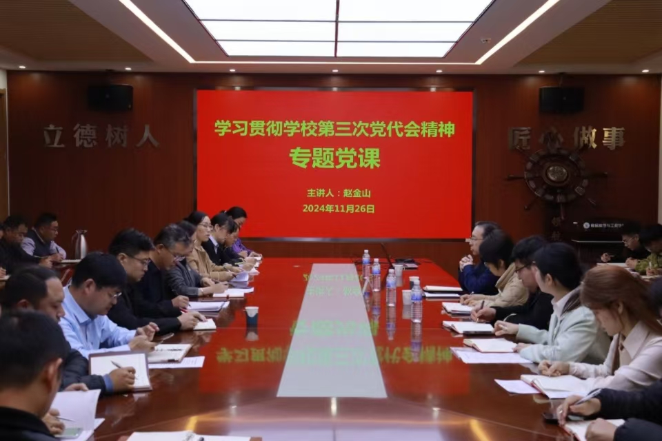赵金山指出,三次党代会工作报告突出政治性、引领性、时代性和先进性,坚持需求导向、目标导向、问题导向三个导向,鲜明提出实施“1186”发展战略,和推进实现“三进位、六突破”的目标任务,是引领全校党员、干部和师生员工团结奋斗、加快建设特色鲜明的高水平应用研究型大学的纲领性文件。他强调,完成三次党代会目标任务,关键在“有效落实”,重点要做到“三个落实”。一是要结合深入学习贯彻习近平总书记重要讲话、重要回信和全国教育大会精神推进落实;二是要结合全面落实二十届三中全会精神和学校进一步深化改革工作方案推进落实;三是要结合部门学院岗位职责、教师学生使命担当推进落实。