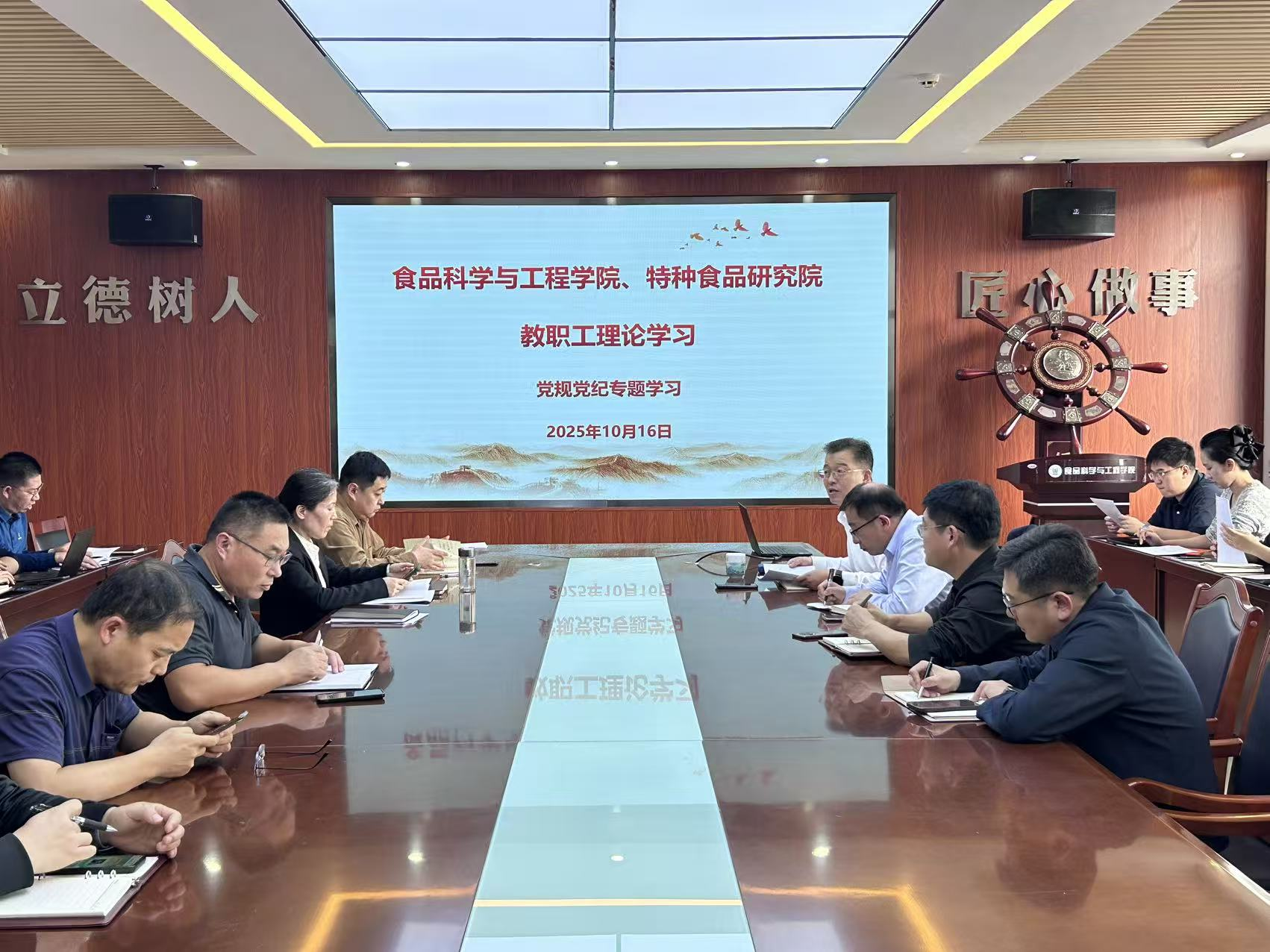 10月16日,太阳集团城娱8722、特种食品研究院召开教职工政治理论学习会议,会议由学院党委书记车广杰主持,全体教职工参加。
