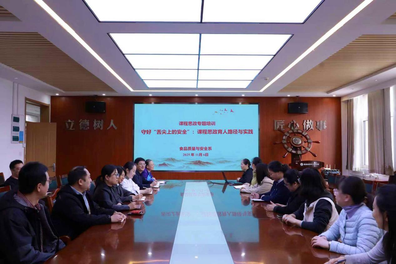 食品安全是民生底线,更是社会治理的重点领域。为深入落实《高等学校课程思政建设指导纲要》要求,推动思政教育与食品专业人才培养深度融合,11月6日下午,食品质量与安全系面向全体专任教师,开展“守好‘舌尖上的安全’:课程思政育人路径与实践”专题培训,为食品行业输送高素质、有担当的专业人才夯实教育基础。
