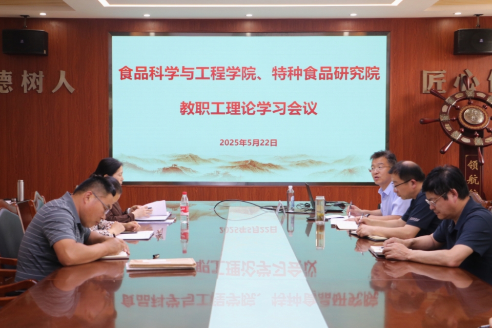 5月22日,太阳集团城娱8722、特种食品研究院召开教职工理论学习会议,深入学习习近平总书记重要讲话精神。会议由学院党委书记车广杰主持,全体教职工参加。