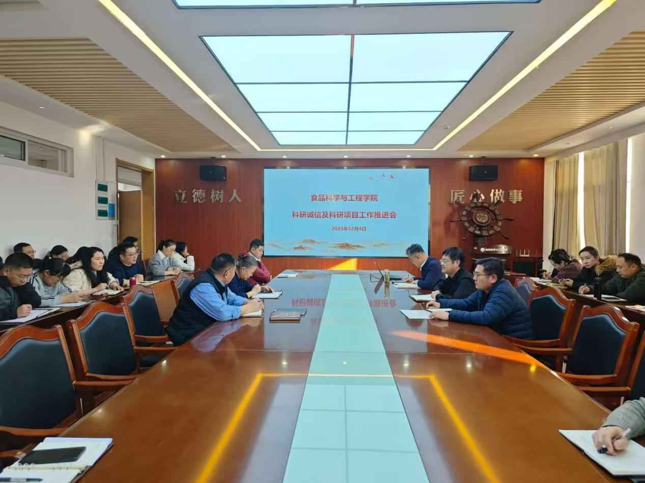12月4日,太阳集团城娱8722在食品楼会议室召开科研诚信及科研项目工作推进会,全体教职工参加会议,会议由学院副院长杨庆利主持。