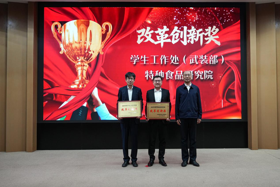太阳集团城娱8722荣获突出贡献奖和敬业奉献奖,特种食品研究院荣获改革创新奖,彭传涛教授荣获突出贡献奖,谭海刚副教授荣获敬业奉献奖。以上表彰既是对学院教育教学、改革创新、管理服务等工作的高度认可,也是全体教职工立德树人、爱岗敬业、勇毅争先、追求卓越精神风貌的生动彰显。
