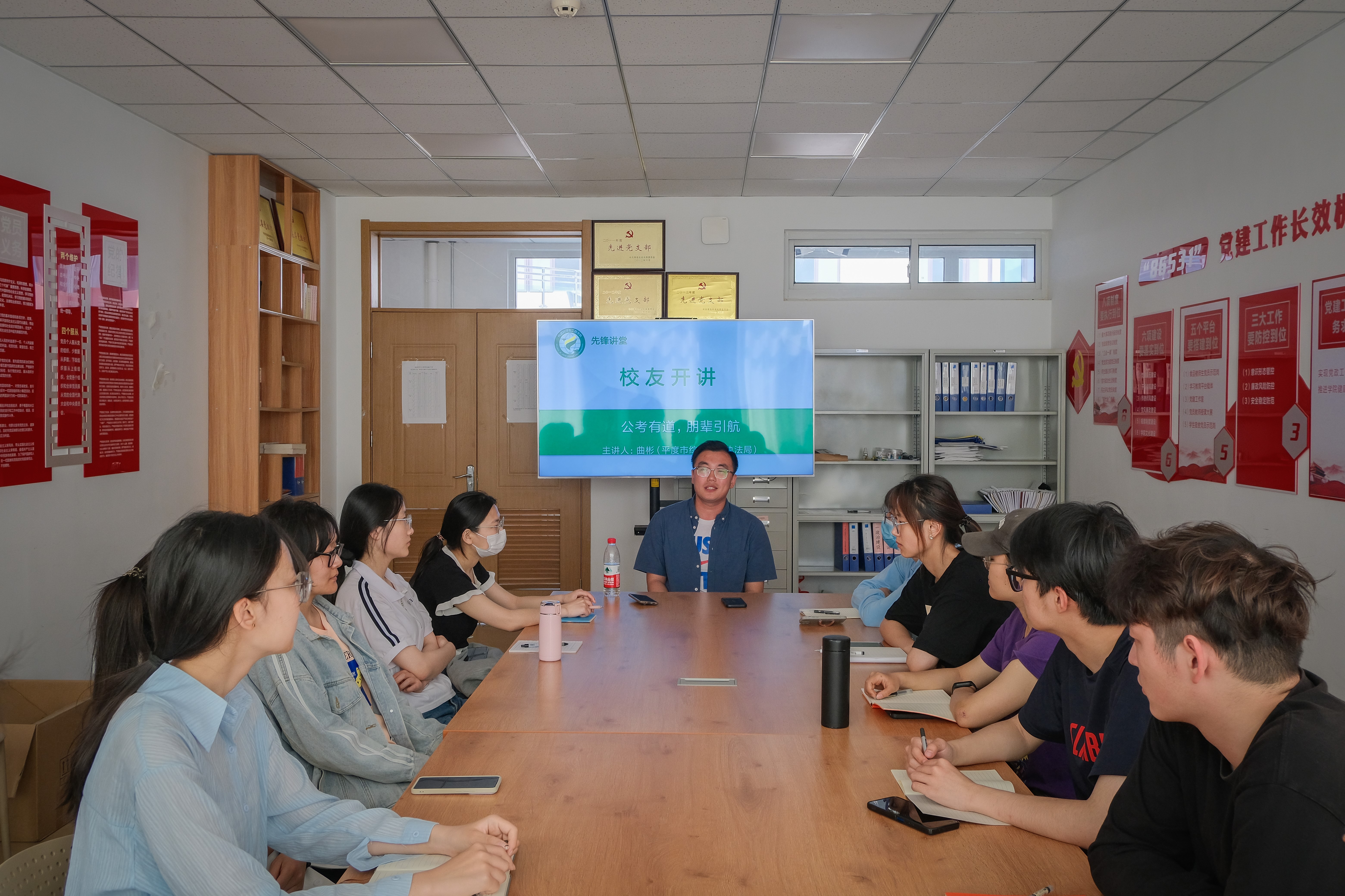 学院于食品楼302会议室举办“校友开讲”讲座活动,会上邀请了现就职于平度市综合行政执法局优秀校友曲彬为食品学子分享基层一线工作感悟心得,耐心为学弟学妹们解疑答惑。曲彬分享了自己考公一路奋斗、一路拼搏来的感触、感想、感受,激励同学们要坚定自己内心的选择,志存高远,脚踏实地,拼搏进取,最终抵达成功的彼岸。
