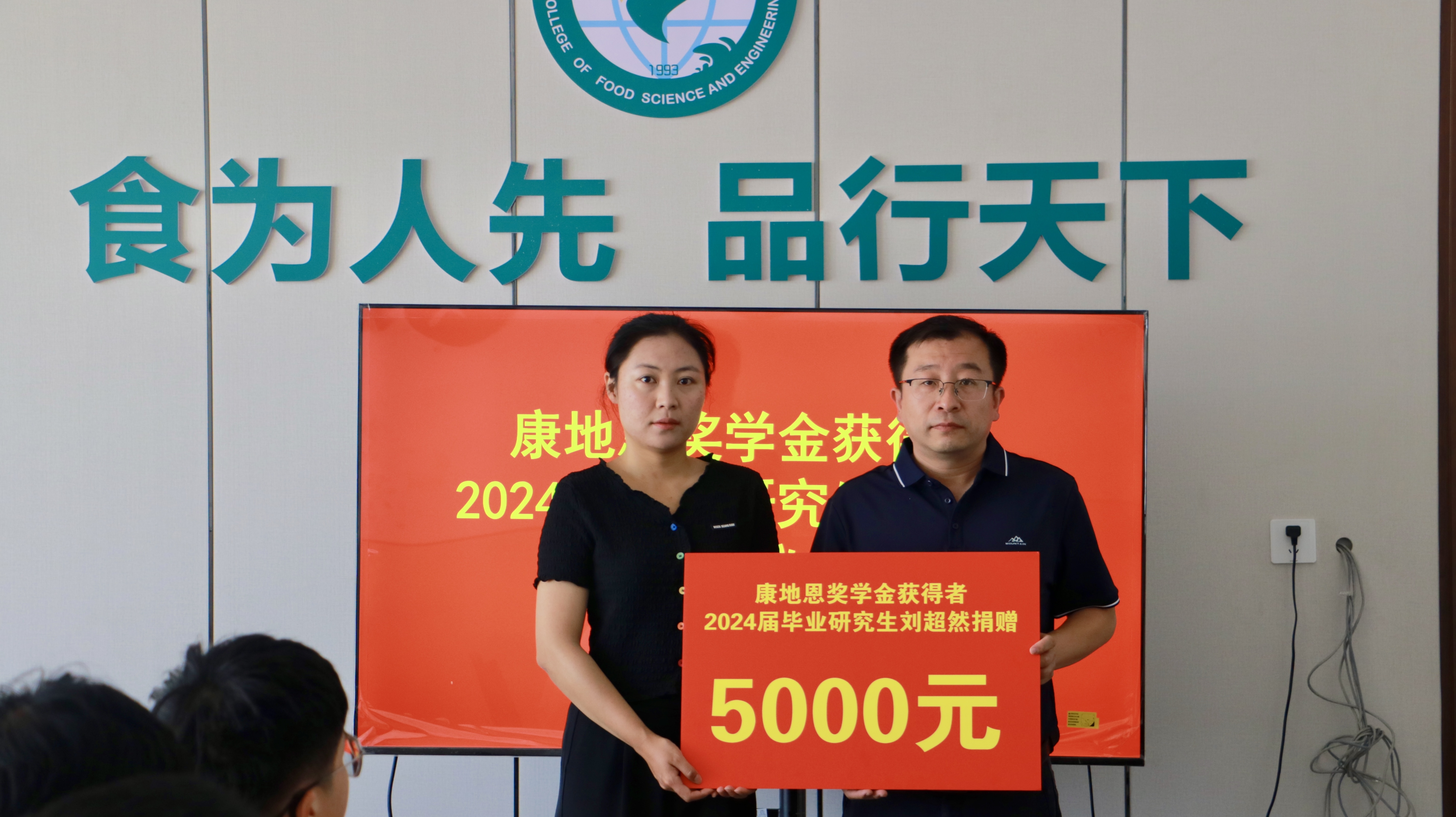毕业离校之际,食品学院收到来自2024届毕业生的特别礼物,食品学院2024届研究生毕业生刘超然、本科毕业生苏杭用自己大学期间所获奖学金,分别向学院捐赠学术活动基金和图书,用于支持学院师弟师妹的学习、创新活动。