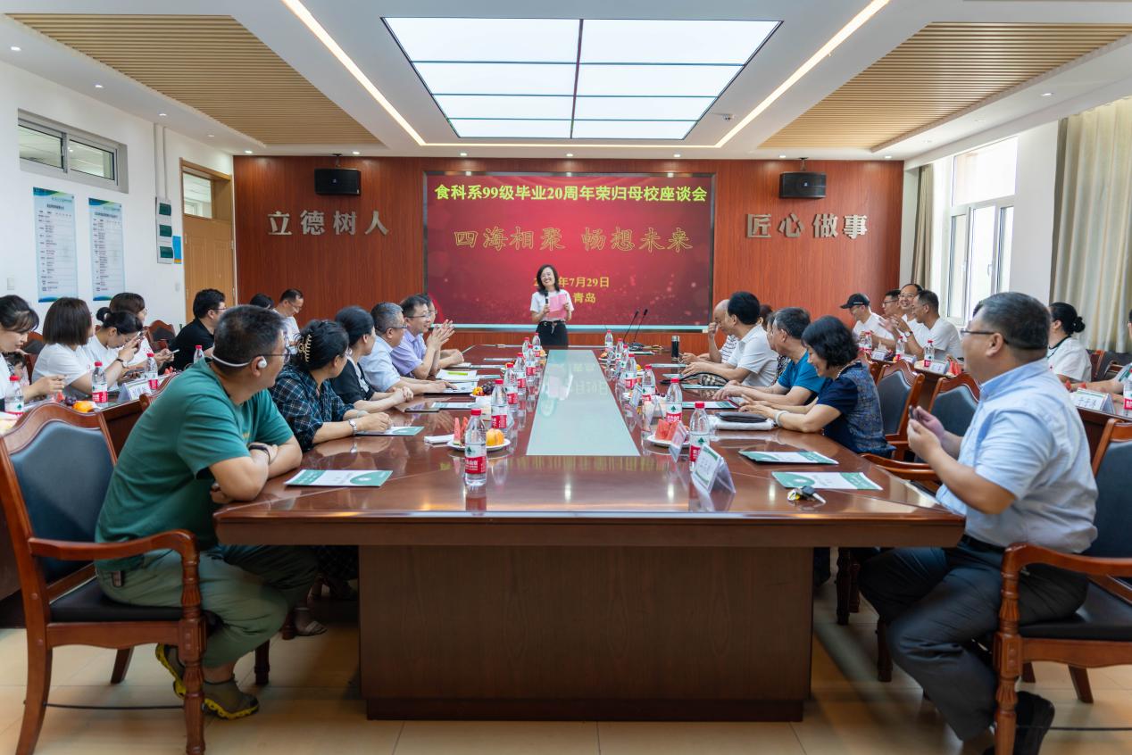7月29日,太阳集团城娱87221999级校友从天南海北再聚母校,与学院老师欢聚一堂,共忆青葱岁月,重温师生情谊,再叙同窗情怀。学院老领导原食品科学与工程系副主任姜连芳,原食品科学与工程系班主任仇宏伟、王世清、栾明川,原食品科学与工程系任课教师王成荣、李颖、陈海华、张双灵、范荣波,原食品科学与工程系班助杨凯、王天龙、王春晓,学院领导孙庆杰、刘晓华、肖军霞等参加座谈会。