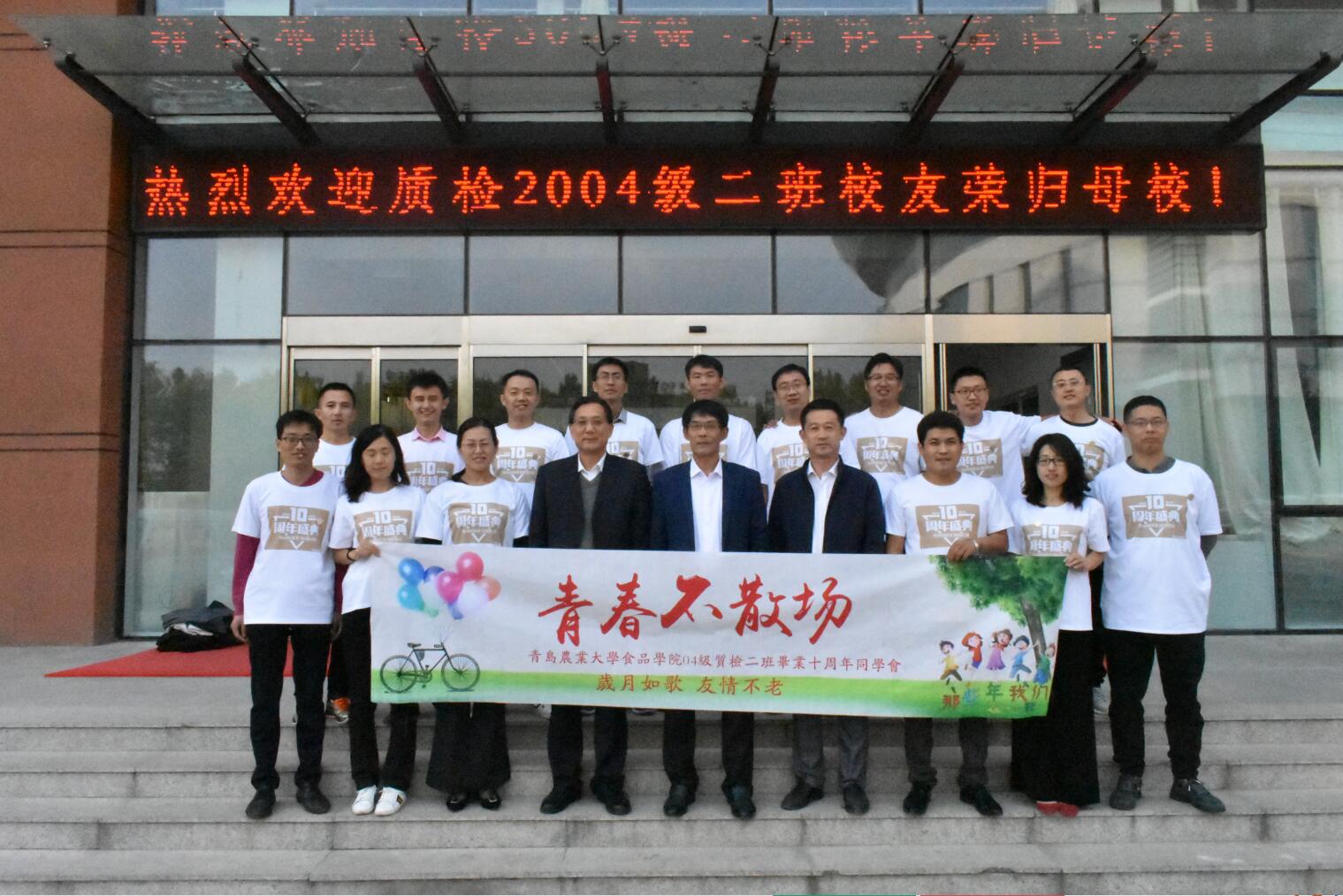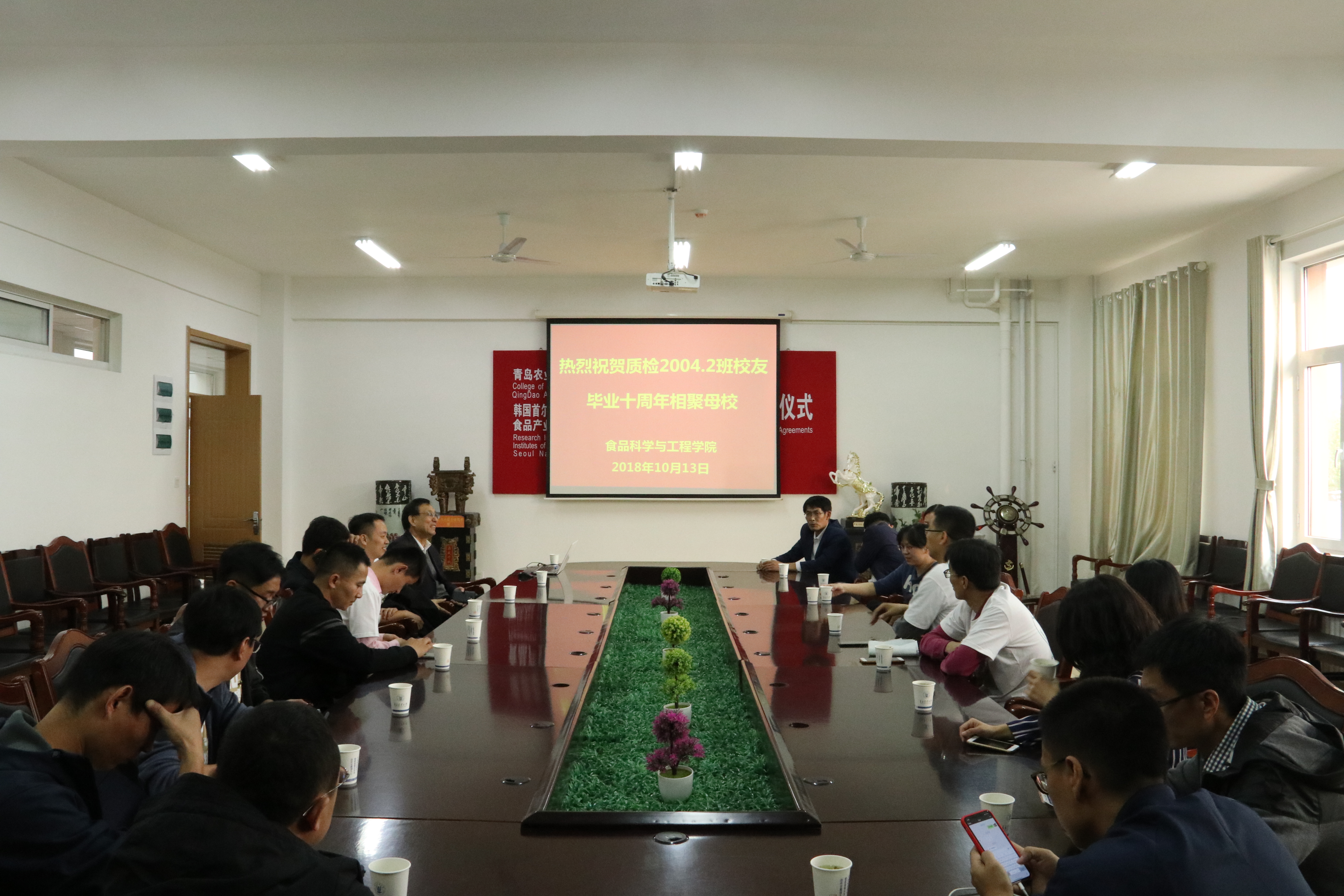 校友们首先参观了校史馆,进一步了解了学校的发展历程和十年来的发展变化,感叹学校变化之大,欣喜学校发展之优。随后,校友们来到食品楼会议室进行座谈交流。会上,何忠诚对质检2004级校友荣归母校表示热烈欢迎,对各位校友十年来取得的优异成绩表示衷心祝贺,向校友们对母校和学院建设发展做出的支持与贡献表示诚挚感谢,并向校友们简要介绍了学校的发展情况。王宝维向校友们介绍了学院十年来的发展状况,特别是学科建设、师资力量、人才培养等方面的发展情况,并希望广大校友今后进一步密切与母校老师的联系,在积极推进院校产学研用合作共建和促进学弟学妹考研就业等方面做出新贡献,在个人事业发展上做到百尺竿头更进一步,欢迎校友们常回母校看看。互动交流阶段,校友们各自介绍了毕业后的工作、学习和生活情况,表达了对母校、学院及恩师的思念和感激之情。座谈会后,校友们还集体参观了食品楼办公区、实验室以及食品工程技术训练中心等学院建设情况,并与领导老师合影留念。