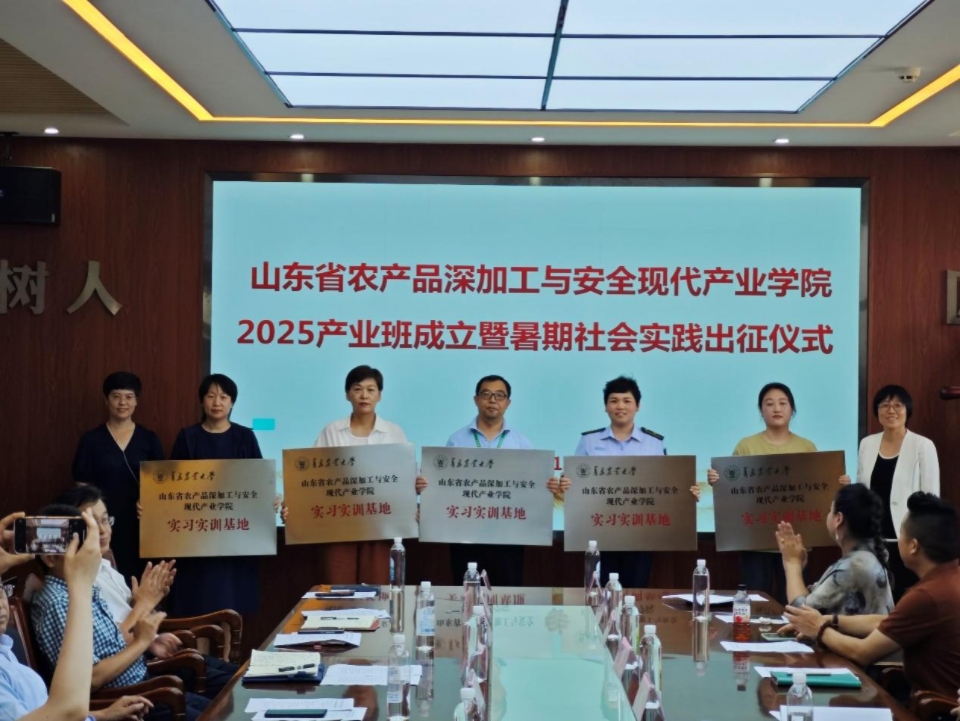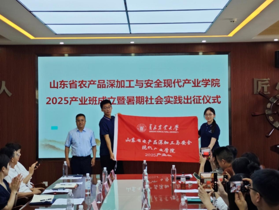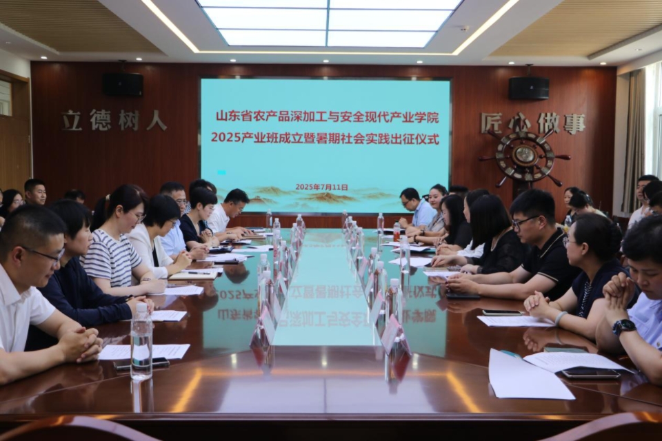 7月11日,山东省农产品深加工与安全现代产业学院2025产业班成立暨暑期实践出征仪式在食品楼举行。青岛市城阳区食品饮料产业协会秘书长黄柳以及青岛鑫复盛等14家企业负责人参加活动,学校党委委员、副校长孙庆杰出席仪式并讲话,学生工作处处长许颖、社会合作处副处长于宁、校团委副书记安金鹏以及教务处、太阳集团城娱8722等单位有关负责人参加仪式。仪式由太阳集团城娱8722党委书记车广杰主持。