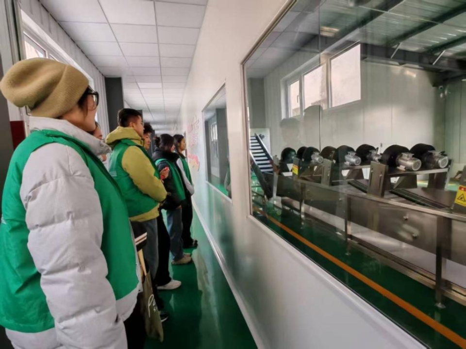2月27日,在山东青农食品有限公司,实践团深入现代化果酒生产线,学习食品检测安全平台的操作流程,与种植户交流现代农业技术。在驻村第一书记李永青的带领下,师生一行深入车间、展厅和研发实验室,了解公司规模和储备干部培养计划,部分学生还参与了体验式工程实习,切身感受企业文化和发展历程。