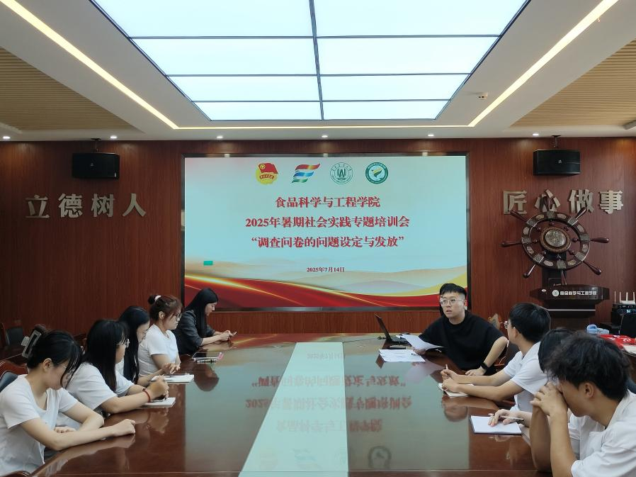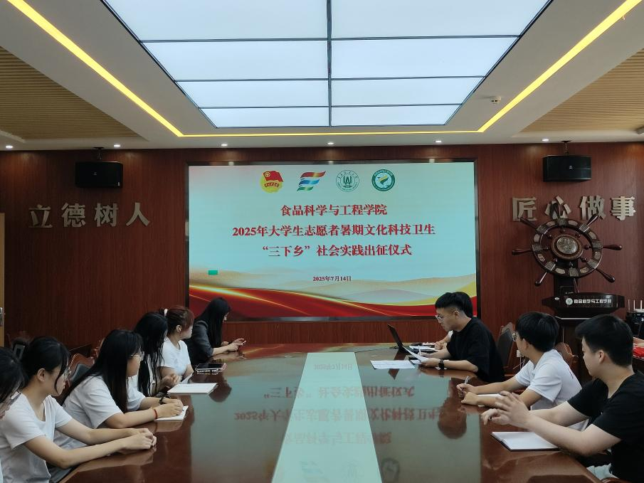7月14日,太阳集团城娱8722在食品楼举行2025年大学生志愿者暑期文化科技卫生“三下乡”社会实践出征仪式暨专题培训。山东省“双带头人”教师党支部书记工作室、“双带头人”教师党支部书记“强国行”专项行动团队负责人李曼教授,辅导员耿磊及各实践团队成员参加活动。