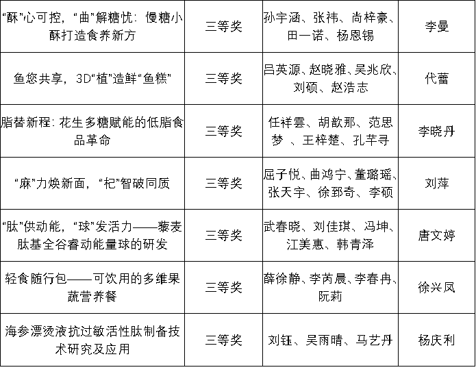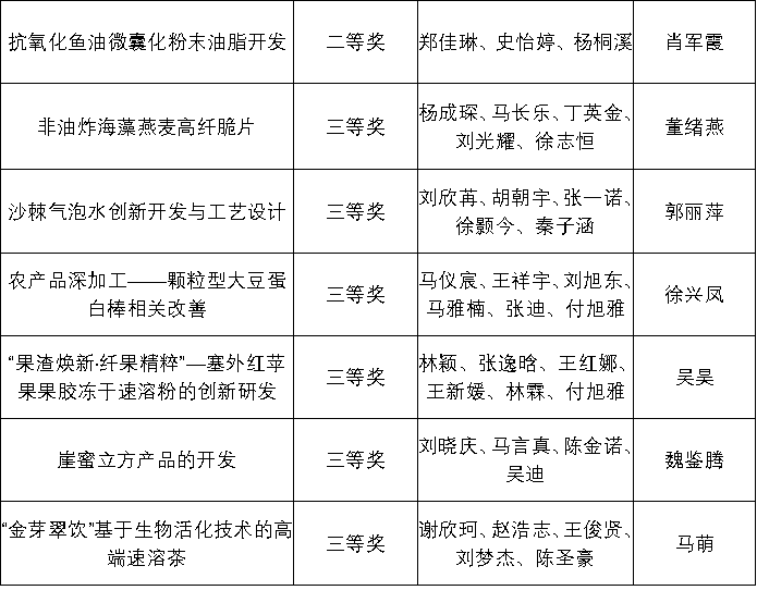 为鼓励我校大学生勇于创新、善于创新,加强大学生的实践能力与合作精神,提升大学生的综合素质,2025年9月至12月初,太阳集团网站8722举办第六届农产品加工创新创业竞赛。本次大赛共235名学生参加,经作品初审、终审阶段,评审专家从科学性、创新创意性和可行性等方面对各参赛队作品进行了综合评定,大赛最终评选出一等奖6项、二等奖13项、三等奖20项。