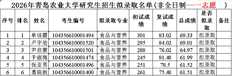 2026年食品学院研究生复试拟录取名单(全日制)