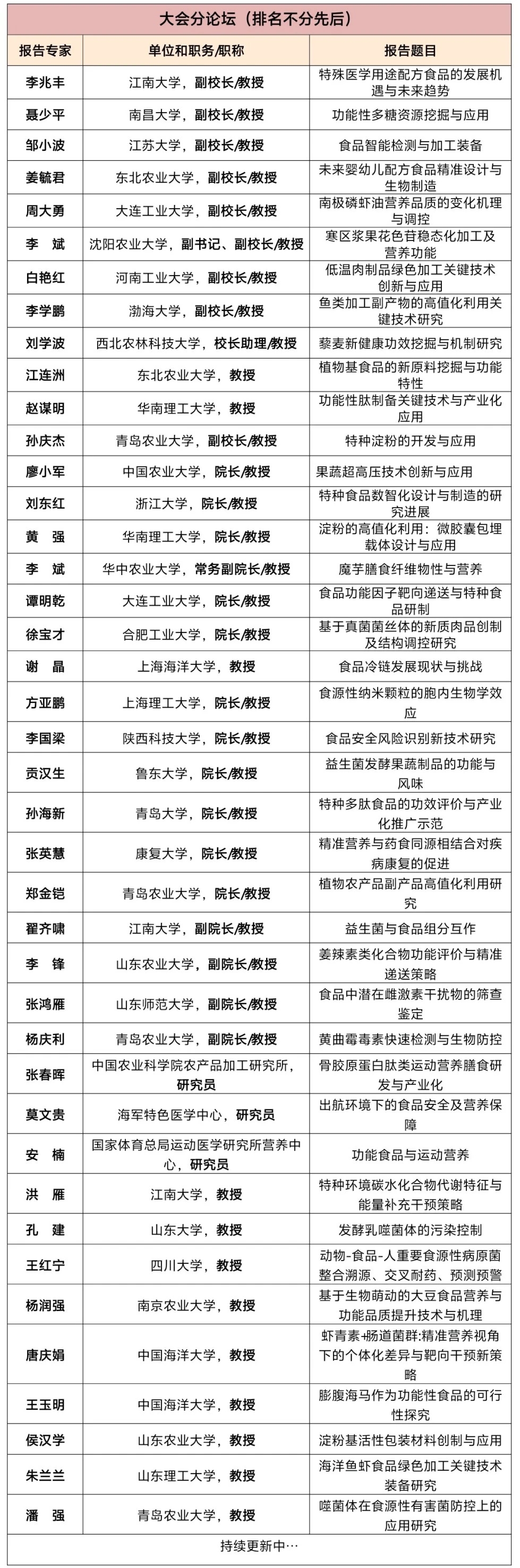诚邀食品科学领域的专家学者与业界同仁,在本论坛分享您的最新研究成果与前沿洞见,共促学术交流与产业创新。