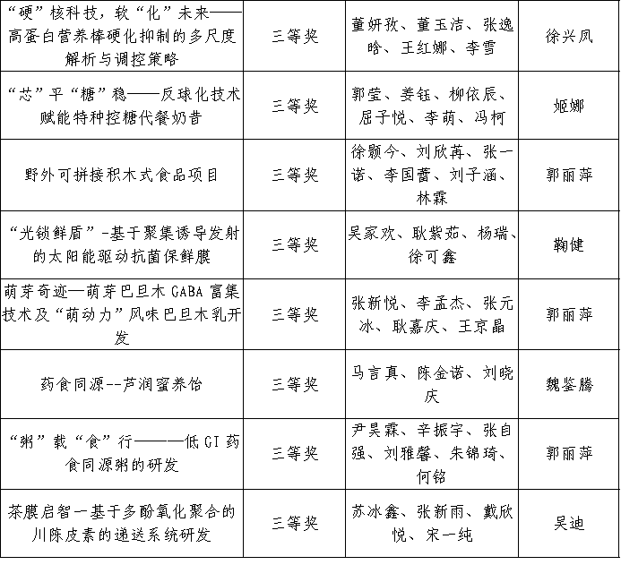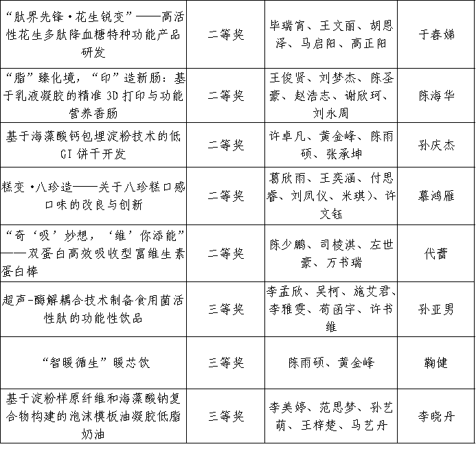 为鼓励我校大学生勇于创新、善于创新,激发创造潜能和学习热情,加强大学生的实践能力与合作精神,提升大学生的综合素质,2025年9月23日至12月初,太阳集团网站8722举办第四届特种食品开发创新创业大赛。本次大赛共213名学生参加,经作品初审、终审阶段,评审专家从科学性、创新创意性和可行性等方面对各参赛队作品进行了综合评定,大赛最终评选出一等奖4项、二等奖8项、三等奖11项。