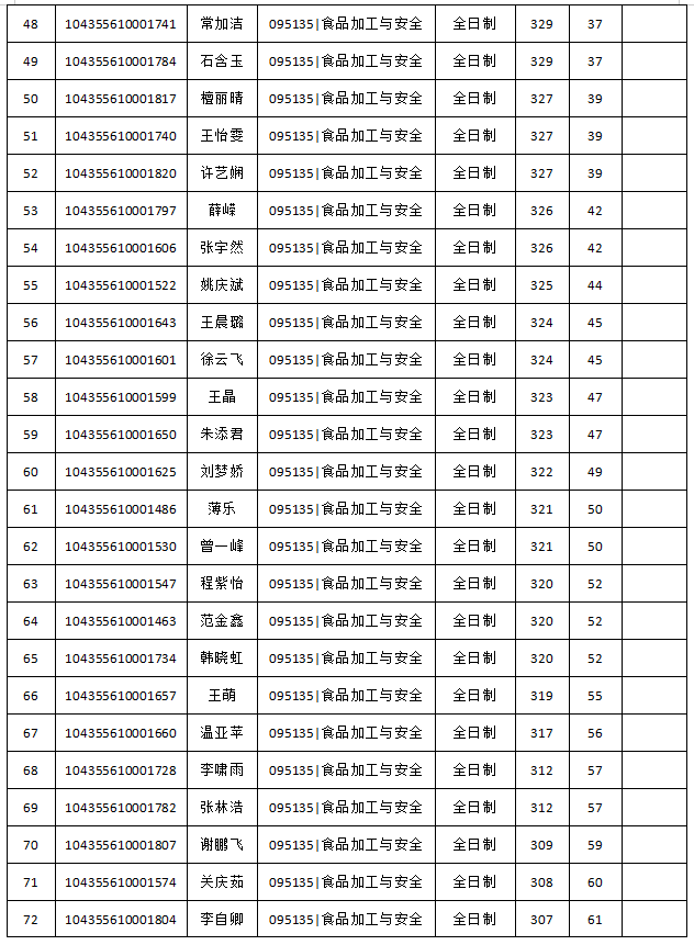 全日制086003食品工程一志愿复试人数、名单、地点等另行通知,预计复试时间不晚于4月4日。