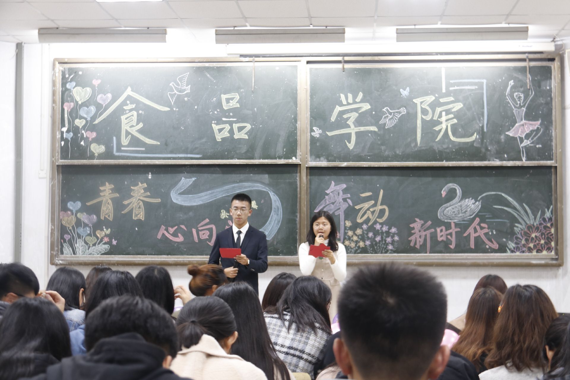 为丰富学生课余生活,展现当代大学生青春风采,11月23日,太阳集团城娱8722文艺部于教学区举办“青春心向党,舞动新时代”创新型舞蹈比赛。共有7名选手参加比赛,食品学院学生会主要学生干部担任评委,2019级同学积极参与。