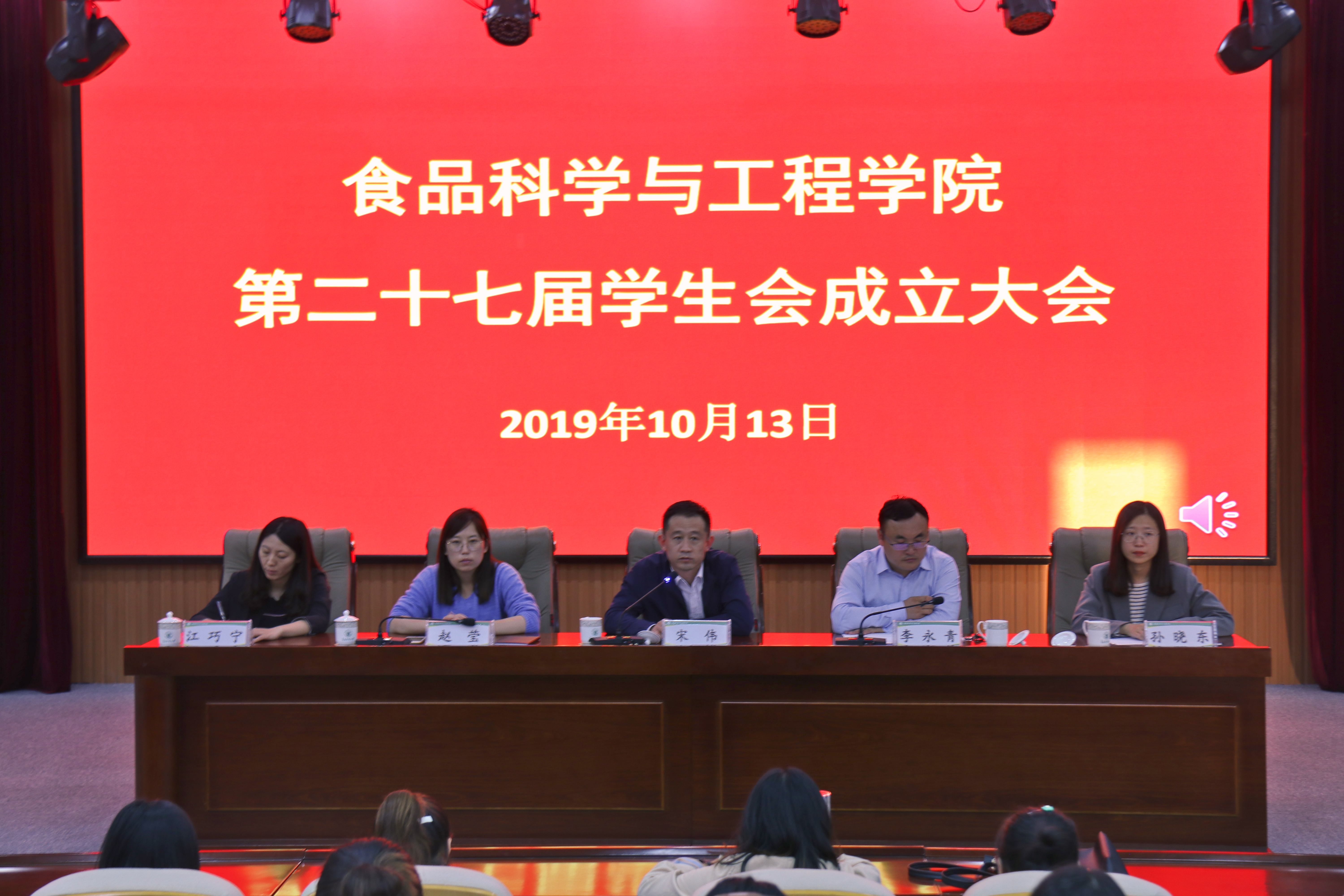 赵莹宣读第二十七届学生会、第三届学风自律委员会名单。第二十六届学生会主席阎佳、第三届自律委员会主席吕晓帅发言,对上一年的学生工作进行总结,随后,新一届学生会主席宋才军、学风自律委员会主席朱秀曼做了就职报告。