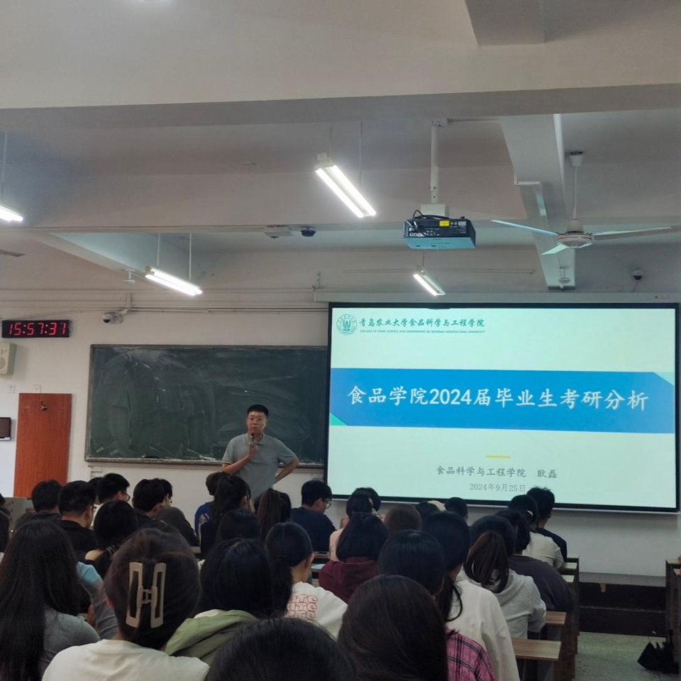 杨庆利强调了考研对于大学生个人成长和未来发展的重要性,鼓励同学们积极报考研究生,为自己的学术和职业生涯打下坚实基础。杨庆利以所带学生的成功案例为切入点,详细向大家讲解了正确选择学校和专业的重要性。他建议同学们要多了解各个食品学科高校的师资力量、科研水平和就业前景等信息,以便做出明智的选择。交流环节,现场气氛热烈,杨庆利一一解答了同学们的问题。