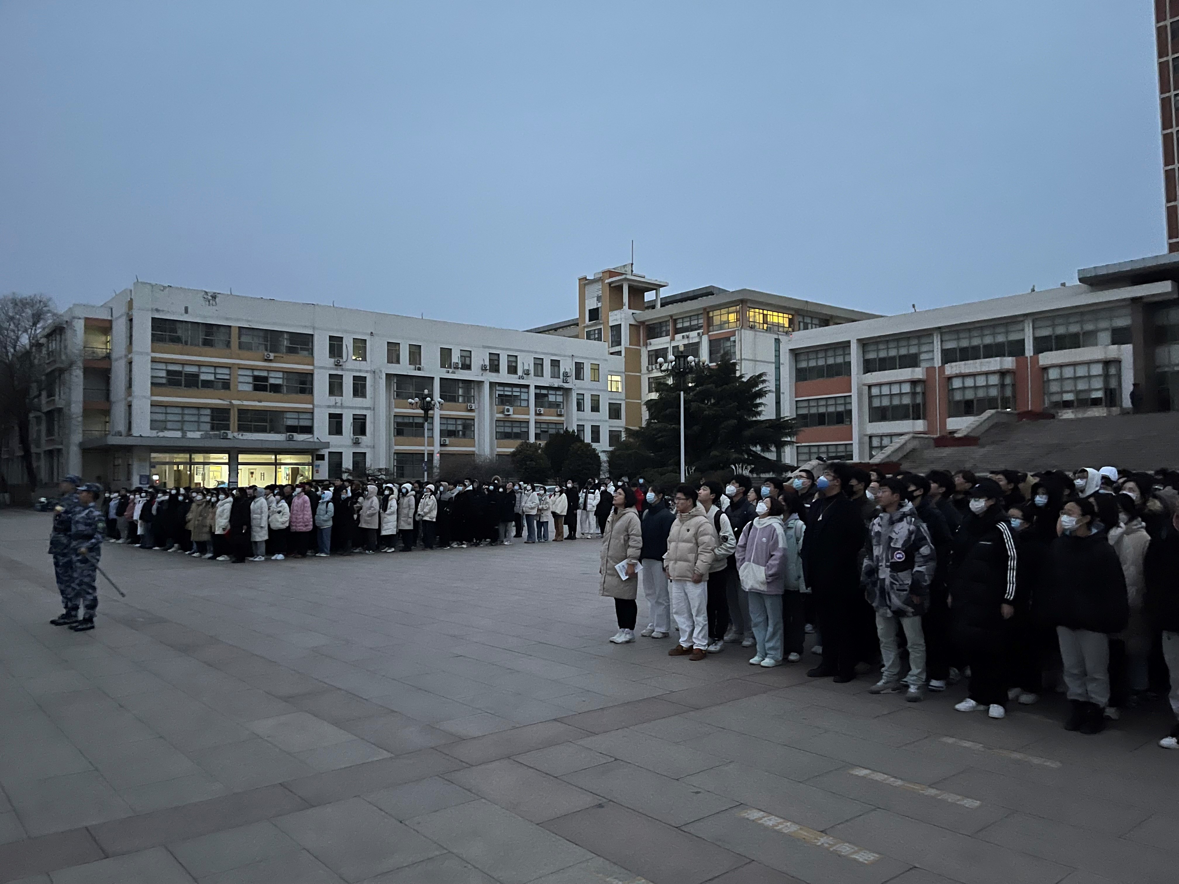 2月13日,太阳集团城娱8722在虹子广场举行升旗仪式。学院辅导员和2020级、2021级、2022级3+2全体同学参加。