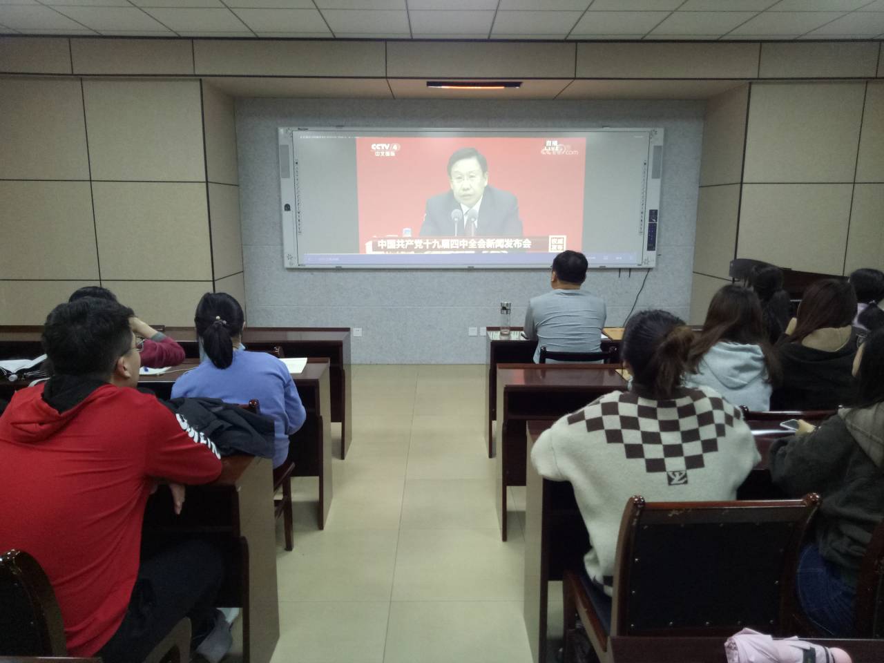 党员集中学习观看了中国共产党第十九届四中全会新闻发布会视频。发布会上,中央宣传部分管日常工作副部长、中央政策研究室副主任王晓辉从关键时期、主题重大和成果丰硕三个方面说明这次全会的历史地位及其深远影响。在场党员认真学习了中央政策研究室分管日常工作副主任江金权介绍的关于坚持党的领导制度体系部分情况,他认为必须全面建设好、始终坚持好、不断完善和发展好构成党的领导制度体系的基本要素的六个方面。与会成员深入了解了关于坚持和完善将按劳分配为主体,多种分配方式并存的社会主义基本经济制度、坚持和完善人民代表大会制度和坚持和完善中国特色社会主义法治体系的相关内容。