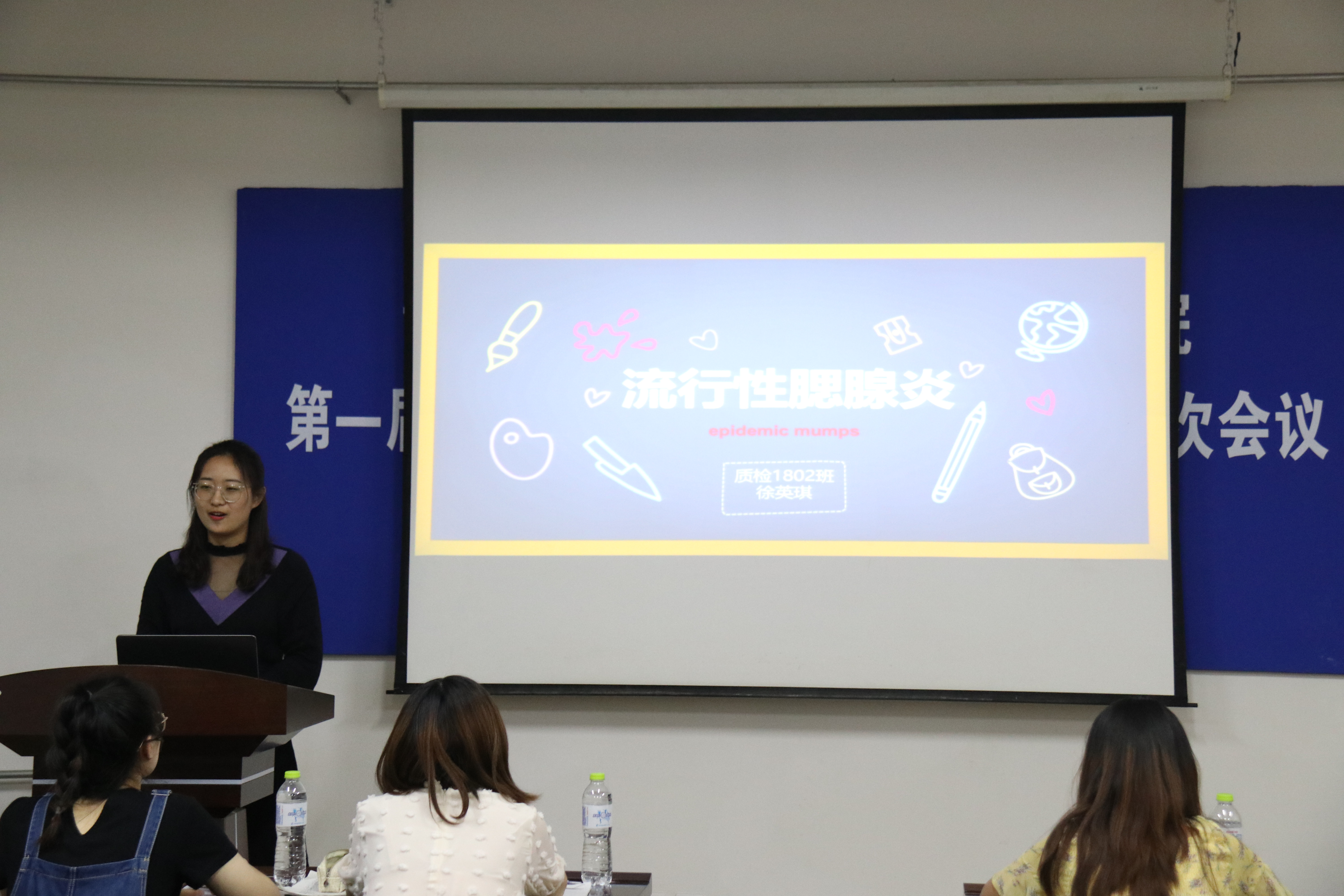 比赛中,选手们从流行性腮腺炎、肺结核、艾滋病等多种传染病入手,通过PPT中的具体实例讲解传染病的特点、传染病预防和调控的知识。质检1802班徐英琪从发病机制、病理特征、治疗要点和预防措施方面详细介绍流行性腮腺炎。她讲道,低热、乏力、食欲下降、头痛、恶心是腮腺炎的主要症状,且腮腺炎多为自限性,通常以支持治疗为主。生工1801班贾欣悦提到艾滋病具有潜伏期时间长、症状不明确并不易治疗的特点。针对预防艾滋病的传染,她建议同学们要坚持洁身自爱,严禁吸毒,不要擅自输血和使用血制品,不借用剃须刀等他人用品。