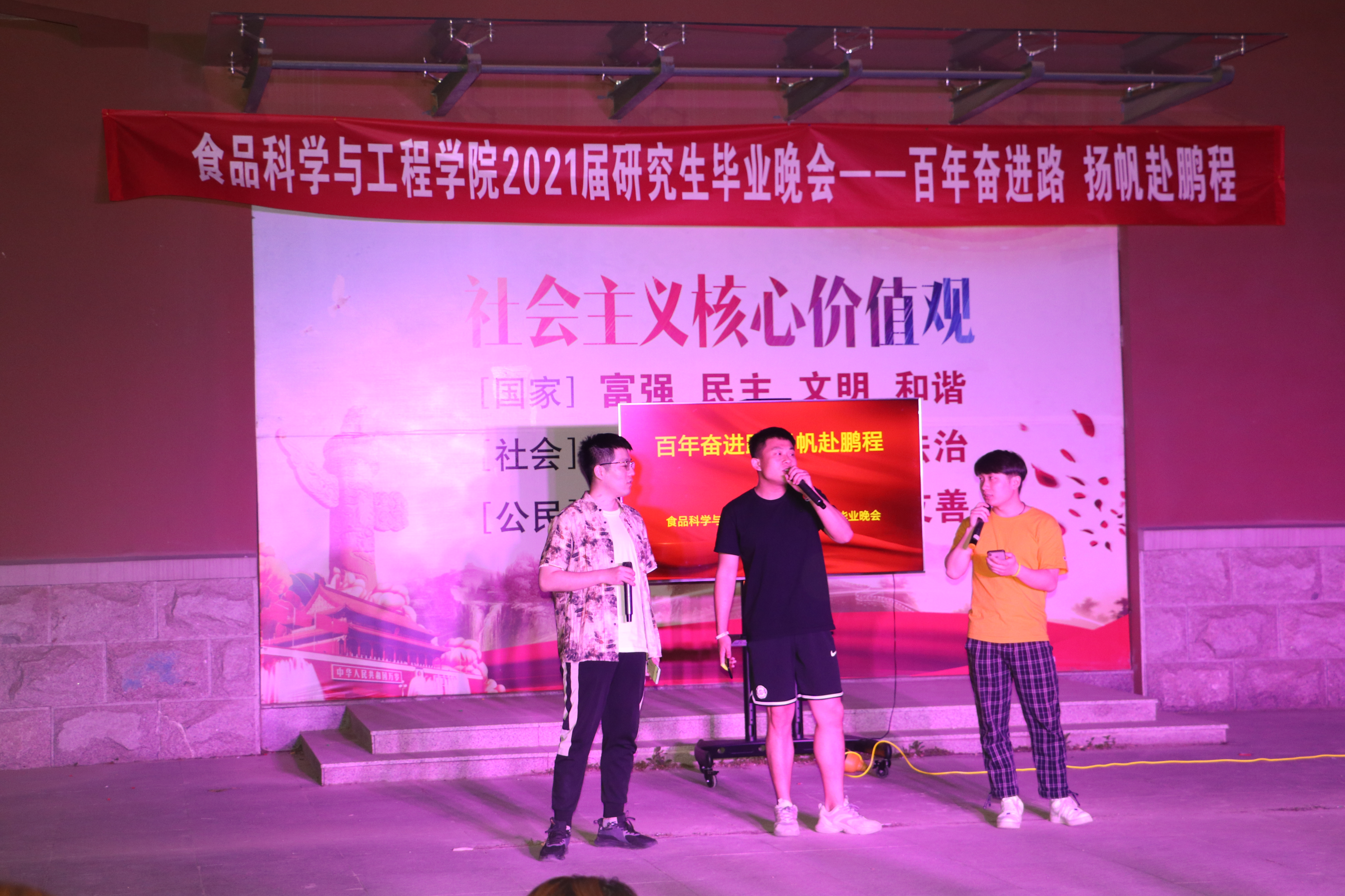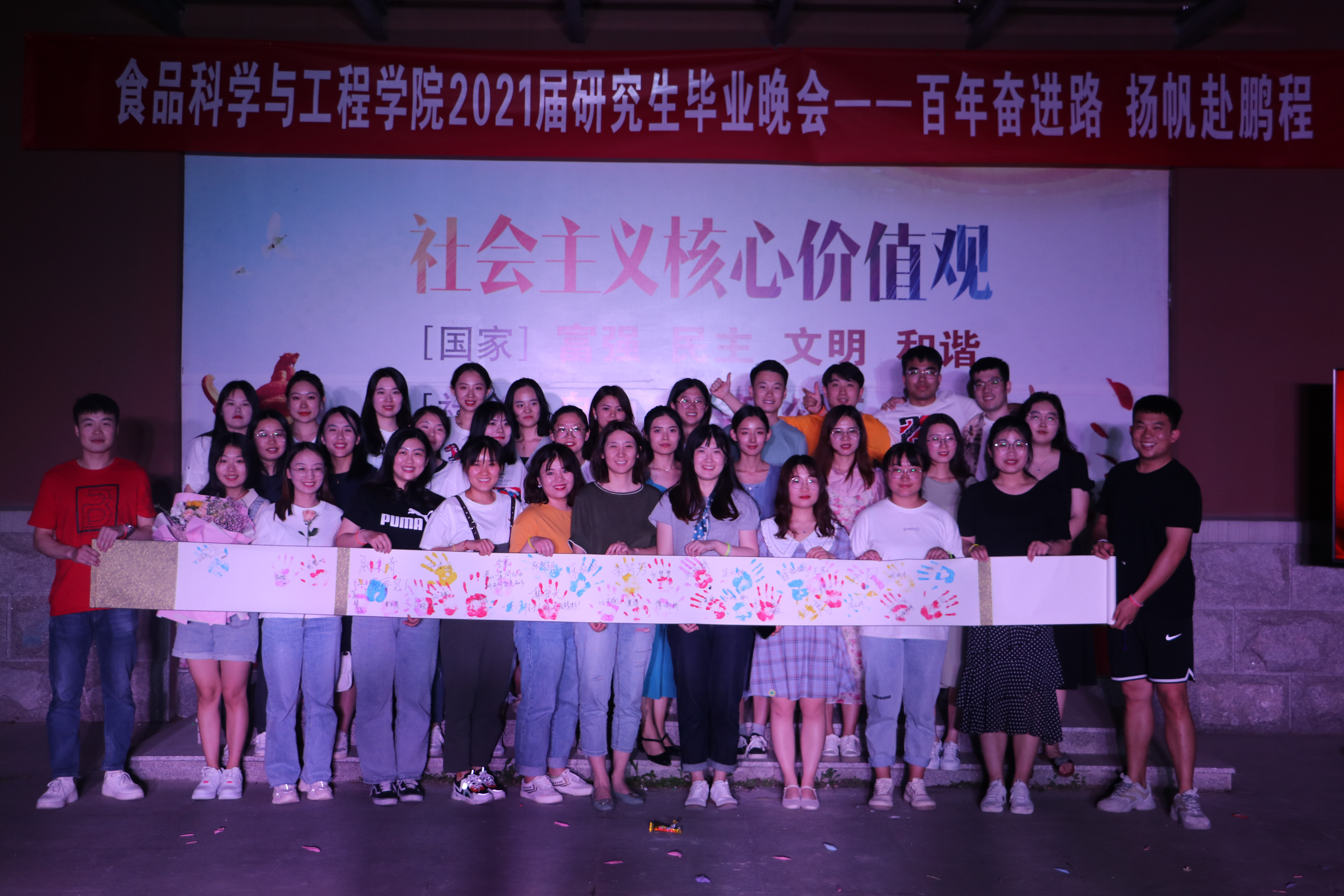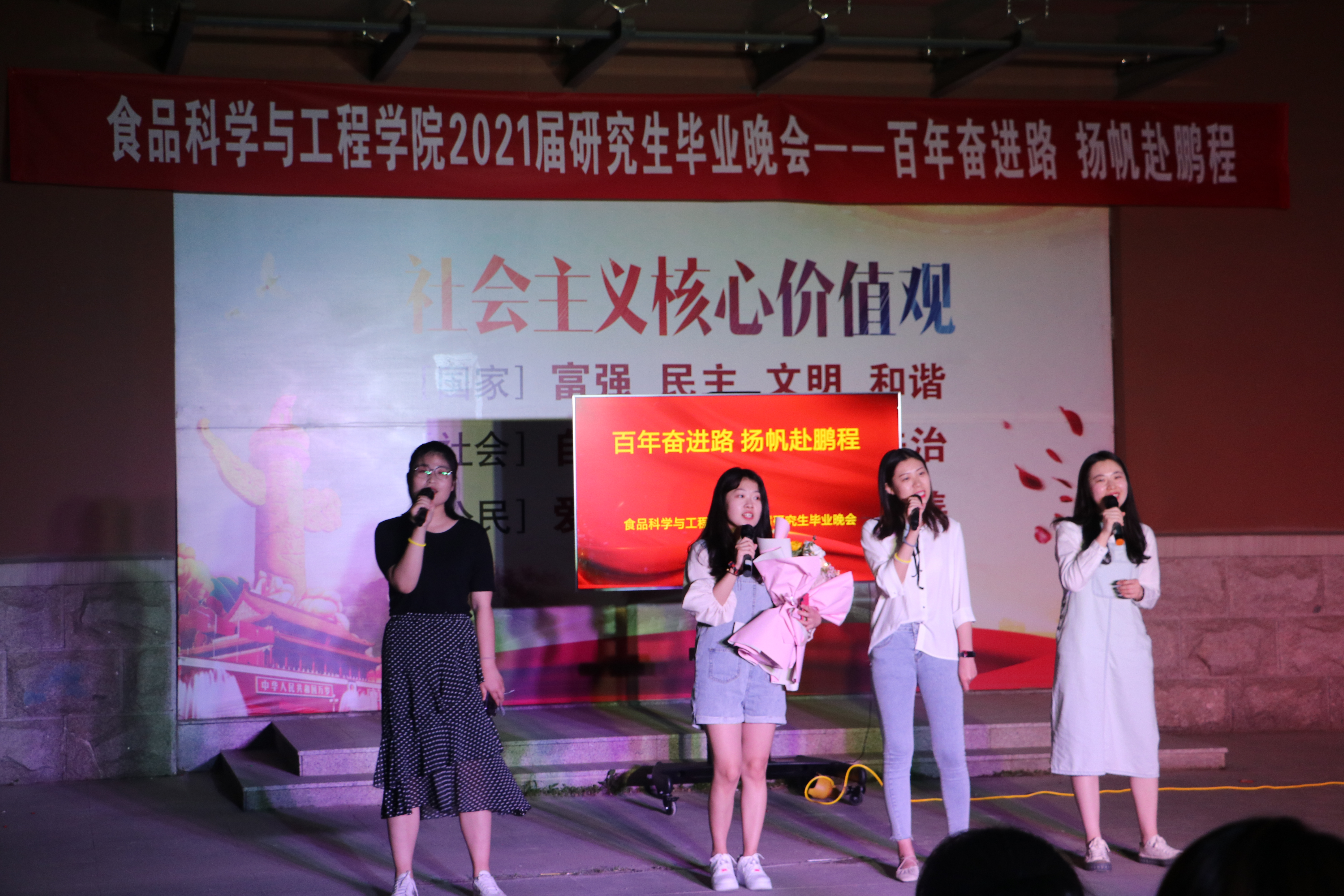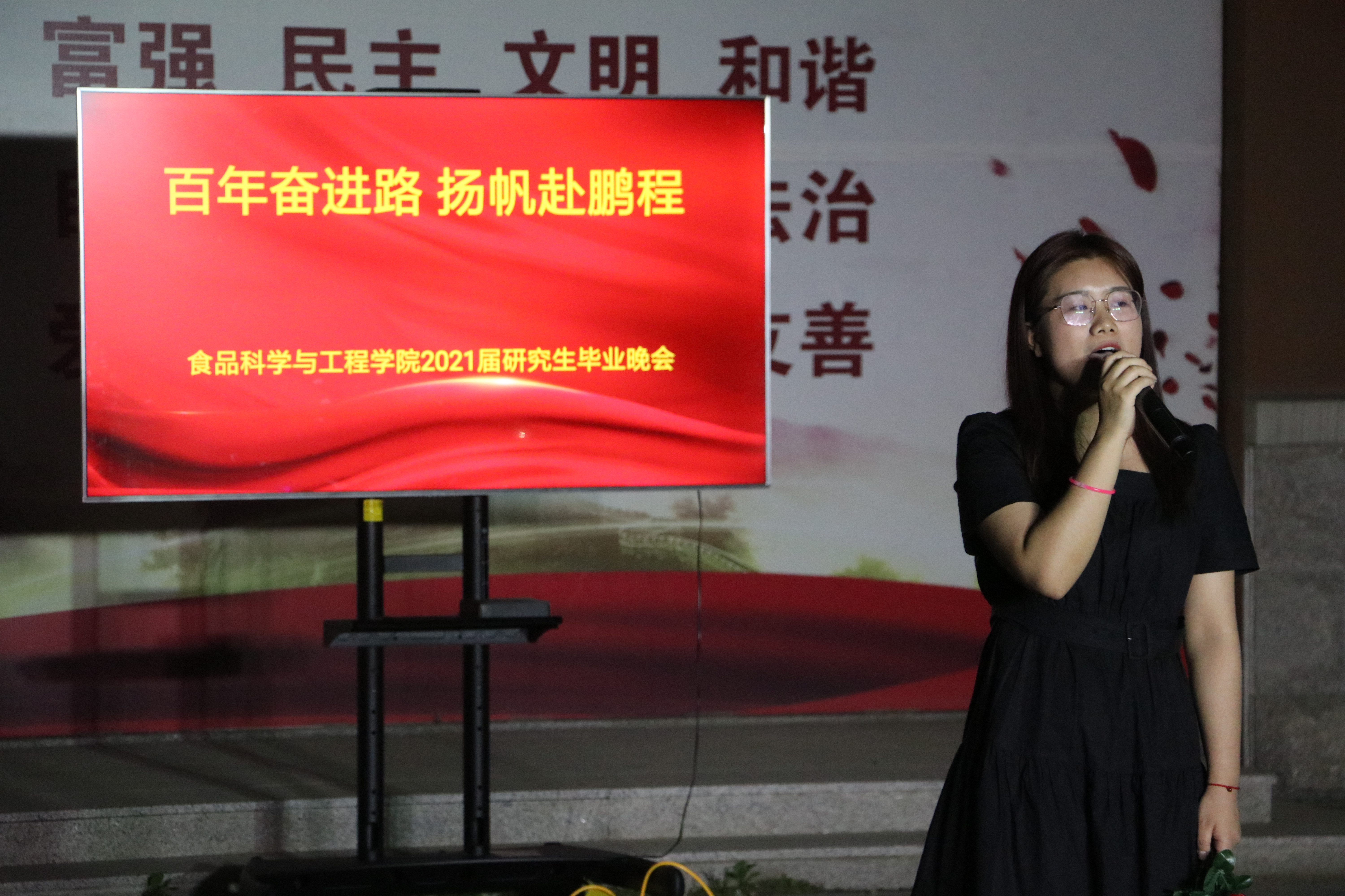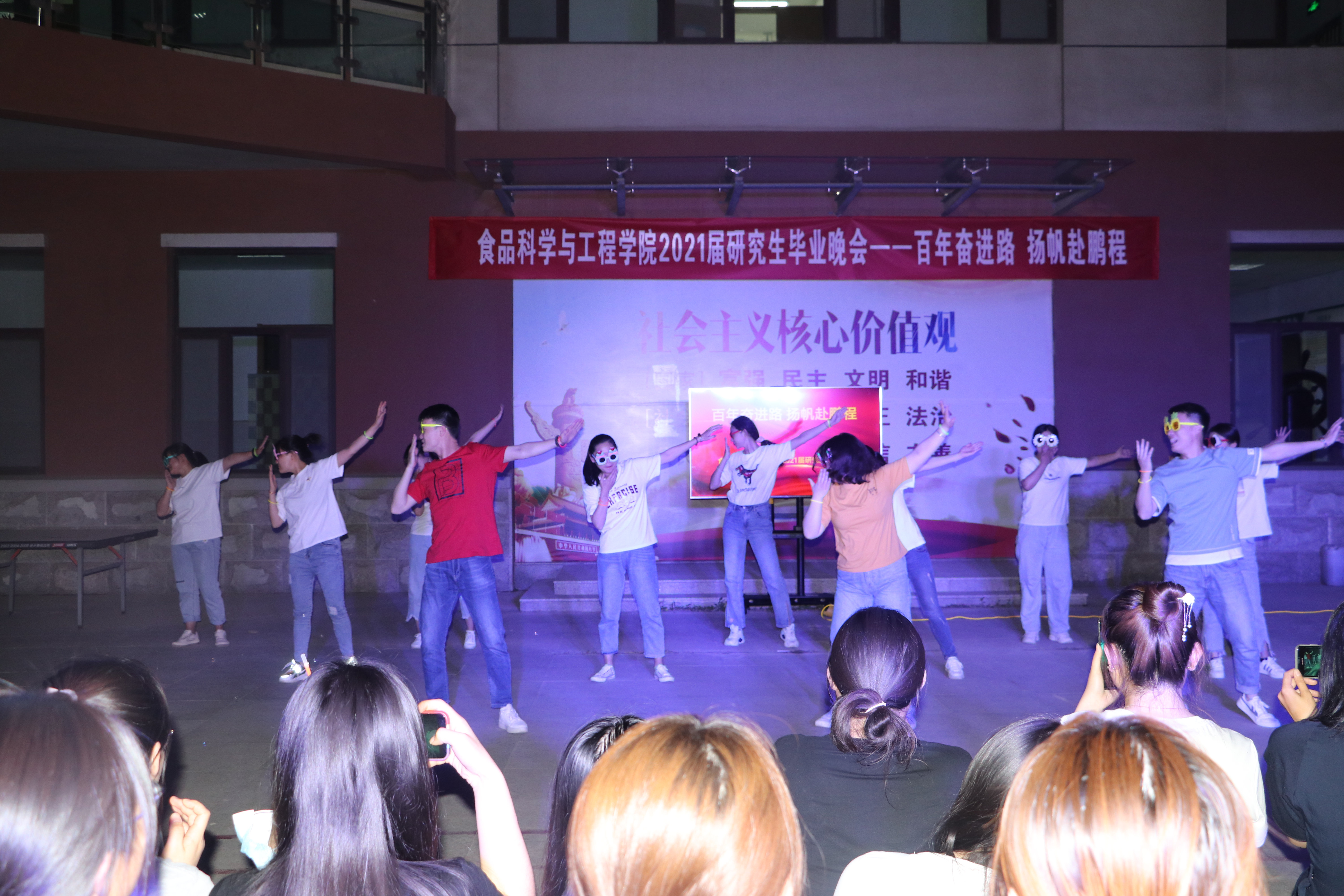6月6日,太阳集团城娱8722于食品楼小广场举办“百年奋进路,扬帆赴鹏程” 2021届研究生毕业晚会。食品学院辅导员、全体研究生共同观看了晚会。