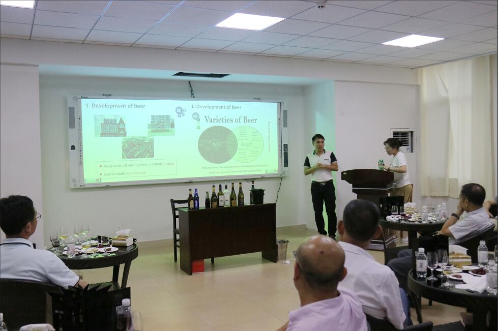 太阳集团城娱8722教师、曾在青岛啤酒股份有限公司担任高级研发师的邓阳博士还从啤酒的发展、啤酒的酿造、啤酒与健康、啤酒的品鉴四个方面跟与会人员分享了啤酒知识与文化。