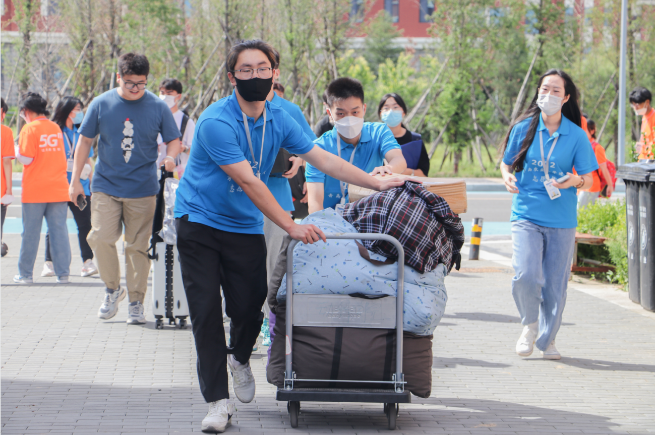 由2020级、2021级主要学生干部组成学生志愿服务团队,分工明确,井井有条,引导新生们有序完成核酸检测,核验录取通知书,发放校园卡,办理入住等一系列的入学手续,以“一对一”“多对一”的志愿服务模式全程护送,切实帮助新生解答生活和学习上的疑难问题。