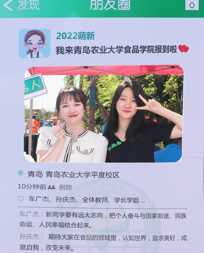食品质量与安全专业2022级新生胡思祺在品尝食品时高兴地说:“第一天来到青岛农大非常激动,尝到学院老师制作的月饼,感觉学校里人情味很足,很温暖,这促使我更有动力、更有干劲去学习”。