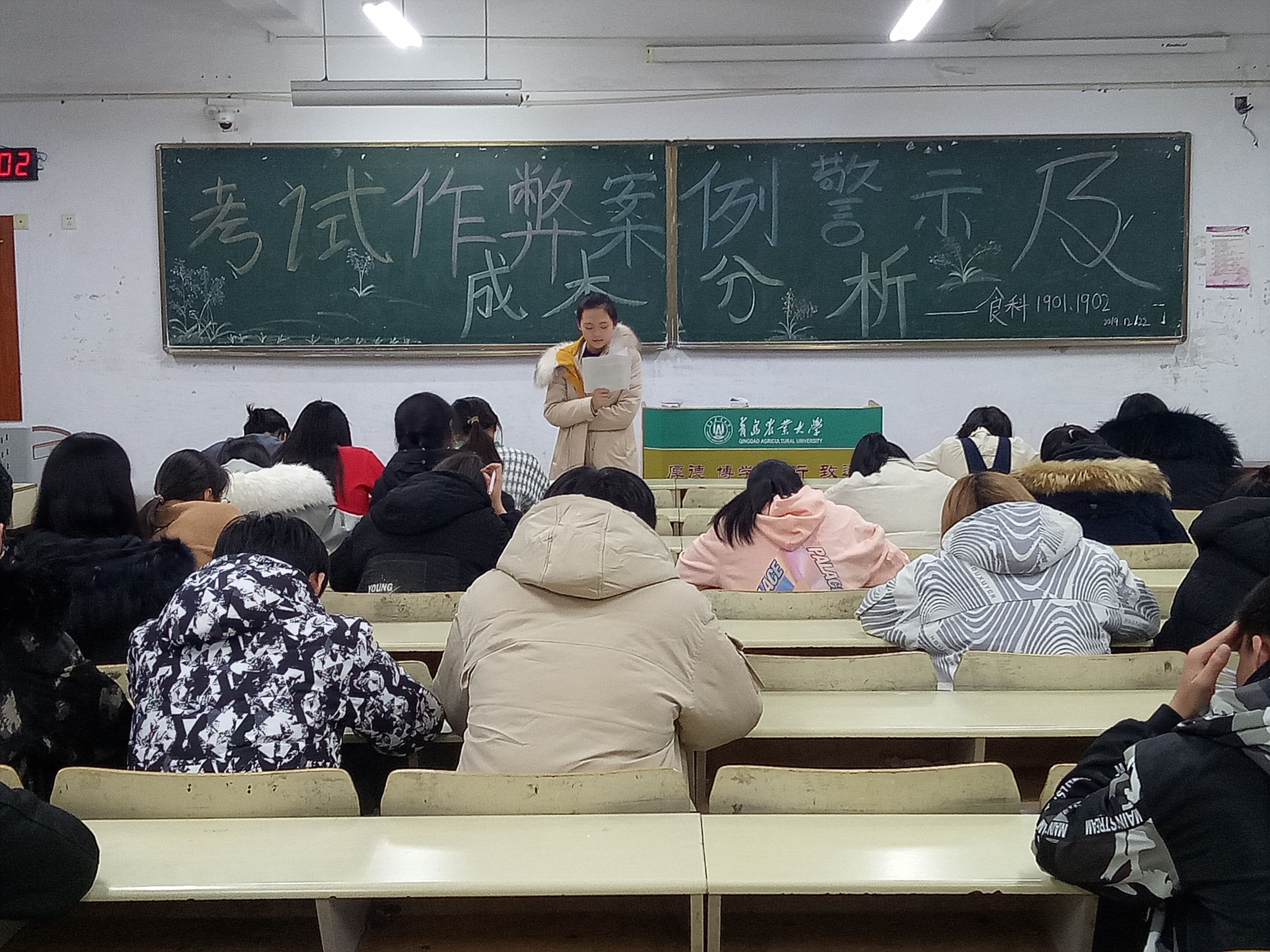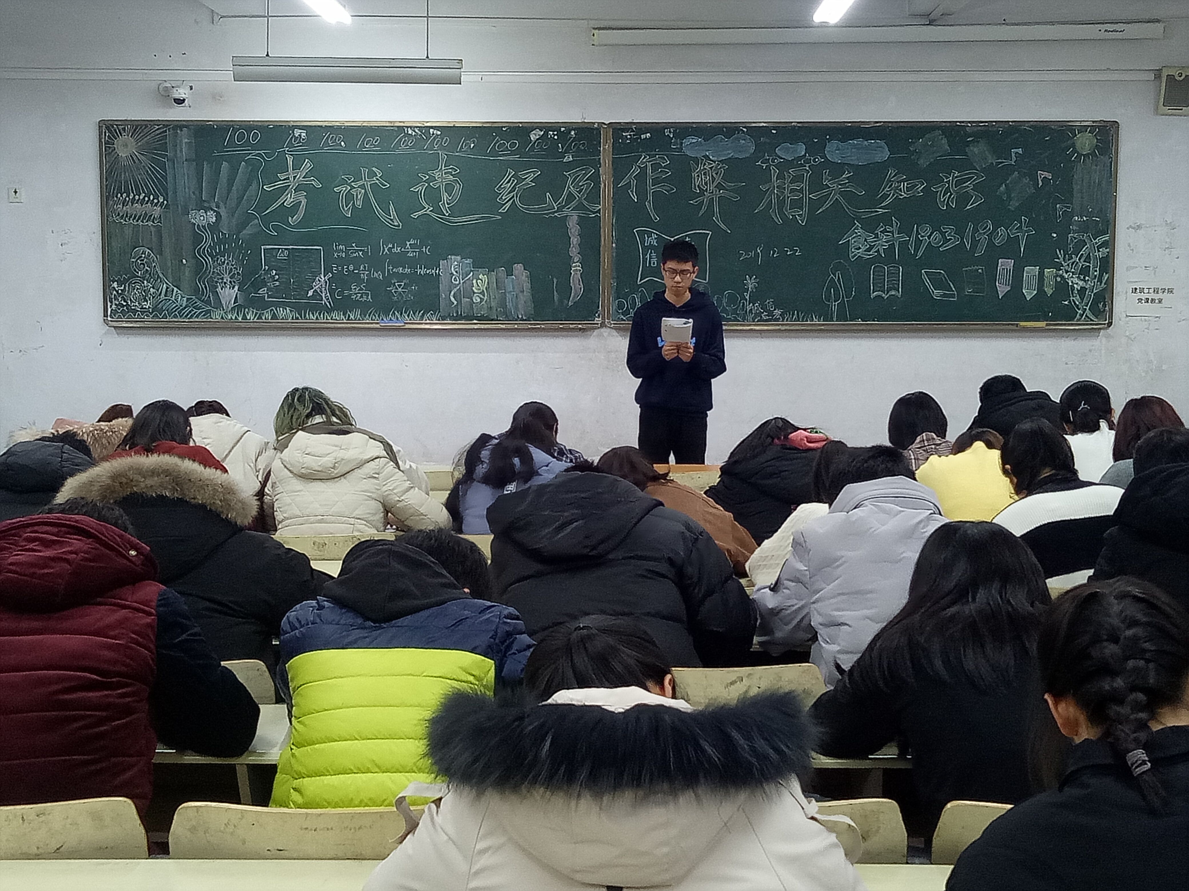 12月22日,太阳集团城娱8722于教学区开展“考试违纪及作弊相关知识”主题政治学习。2018级、2019级全体学生参加。