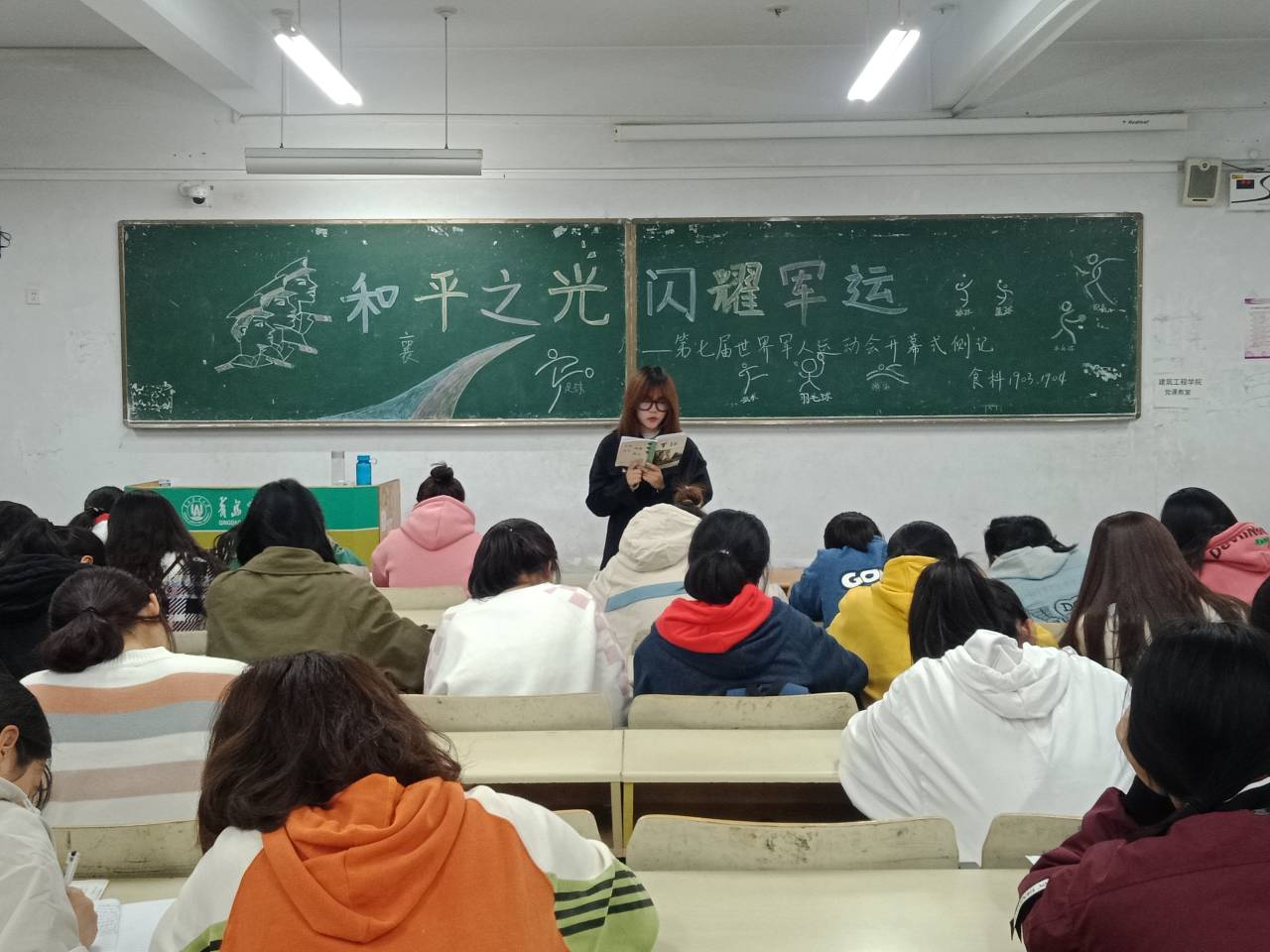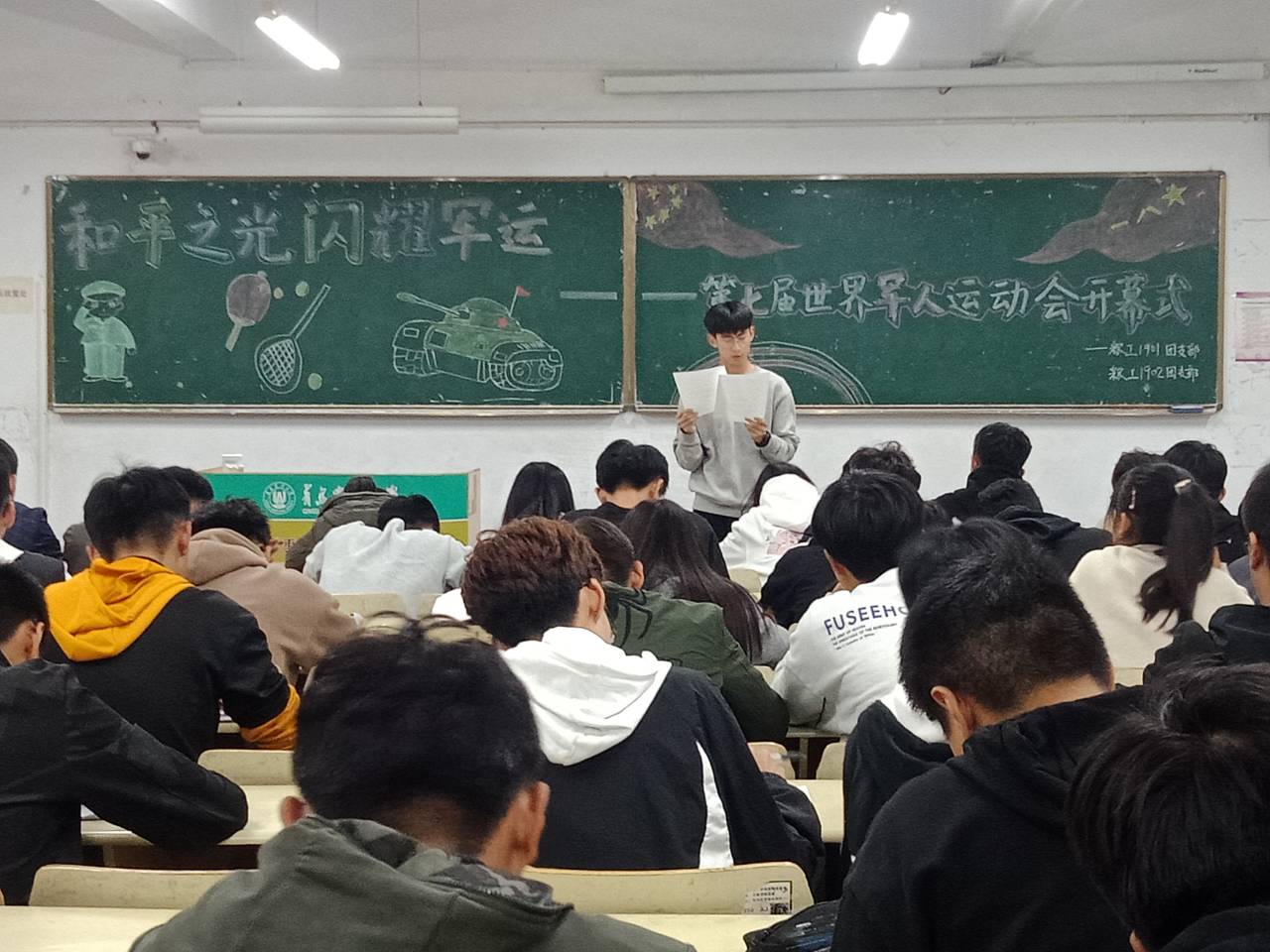 10月27日,太阳集团城娱8722在教学区开展“和平之光闪耀军运—第七届世界军人运动会开幕式侧记”主题政治学习。2018级、2019级全体学生参加学习。