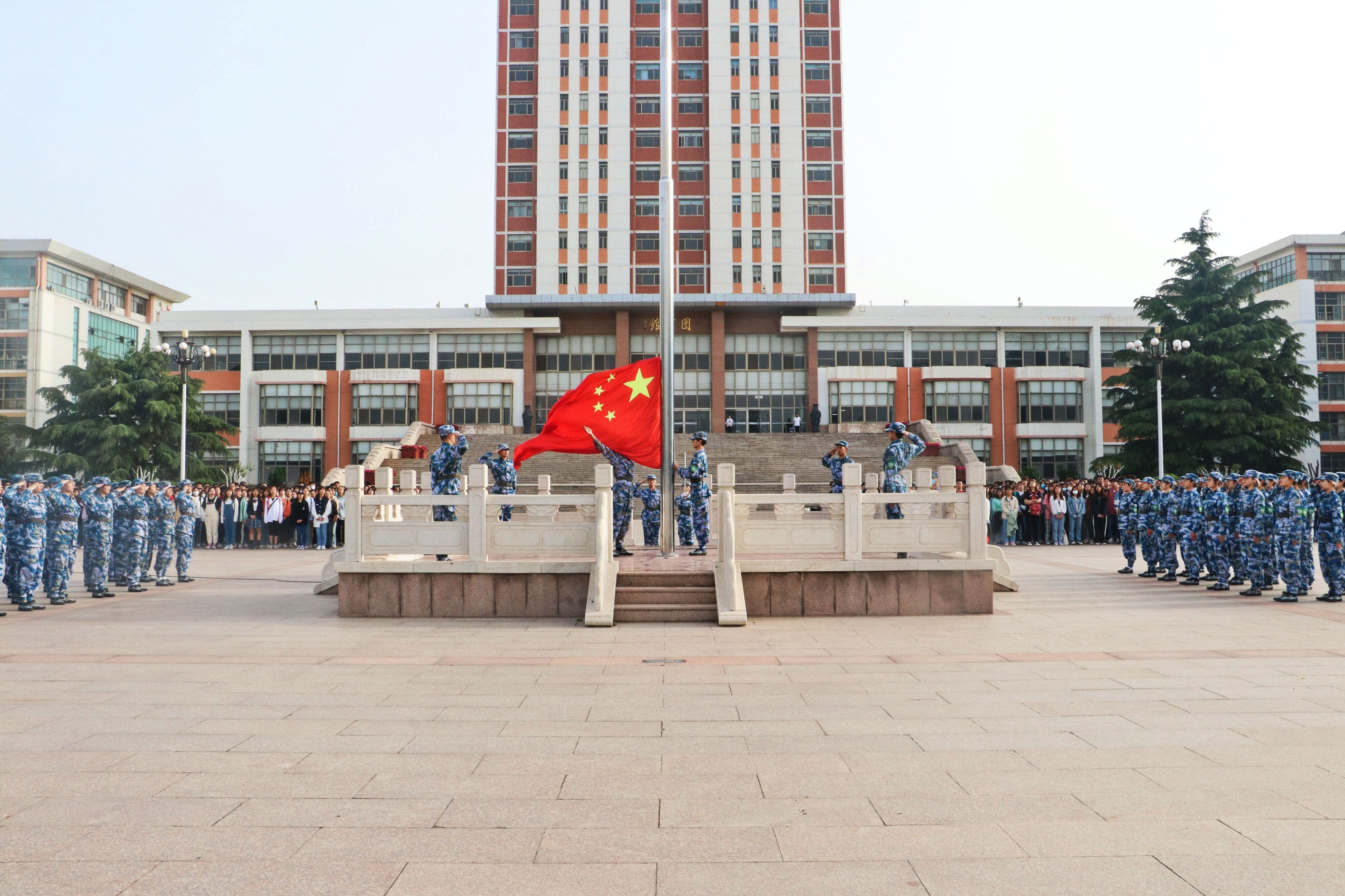 5月24日,太阳集团城娱8722在虹子广场举行升旗仪式。学院2018级、2019级、2020级全体同学参加。