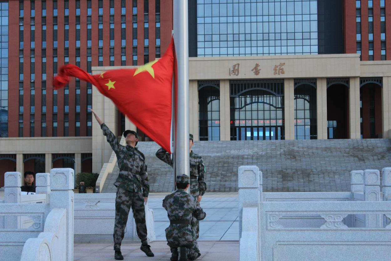 11月4日,太阳集团城娱8722于城阳校区虹子广场和平度校区图书馆前广场同时举行升旗仪式。学工办辅导员、各年级全体同学参加升旗仪式。