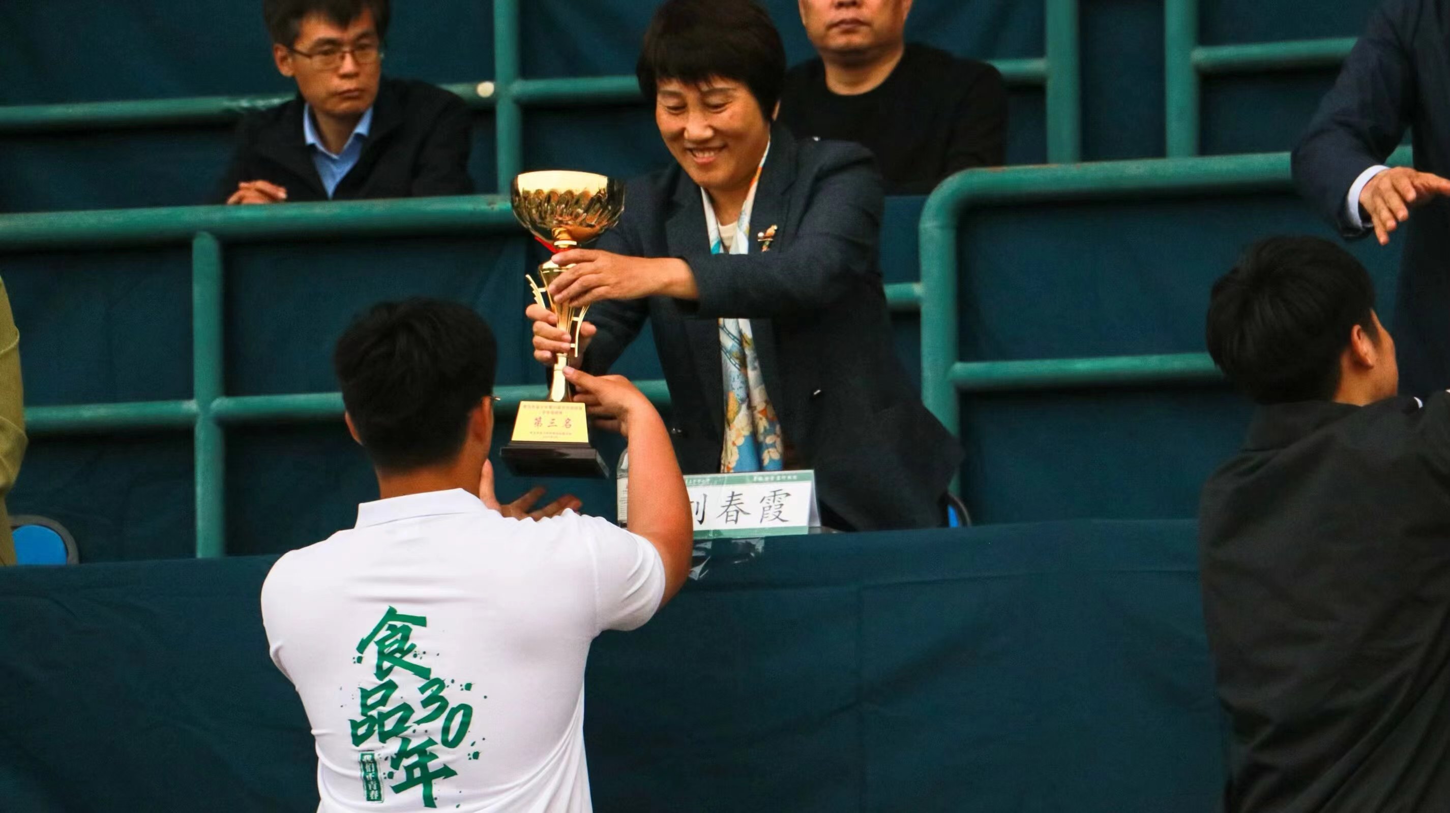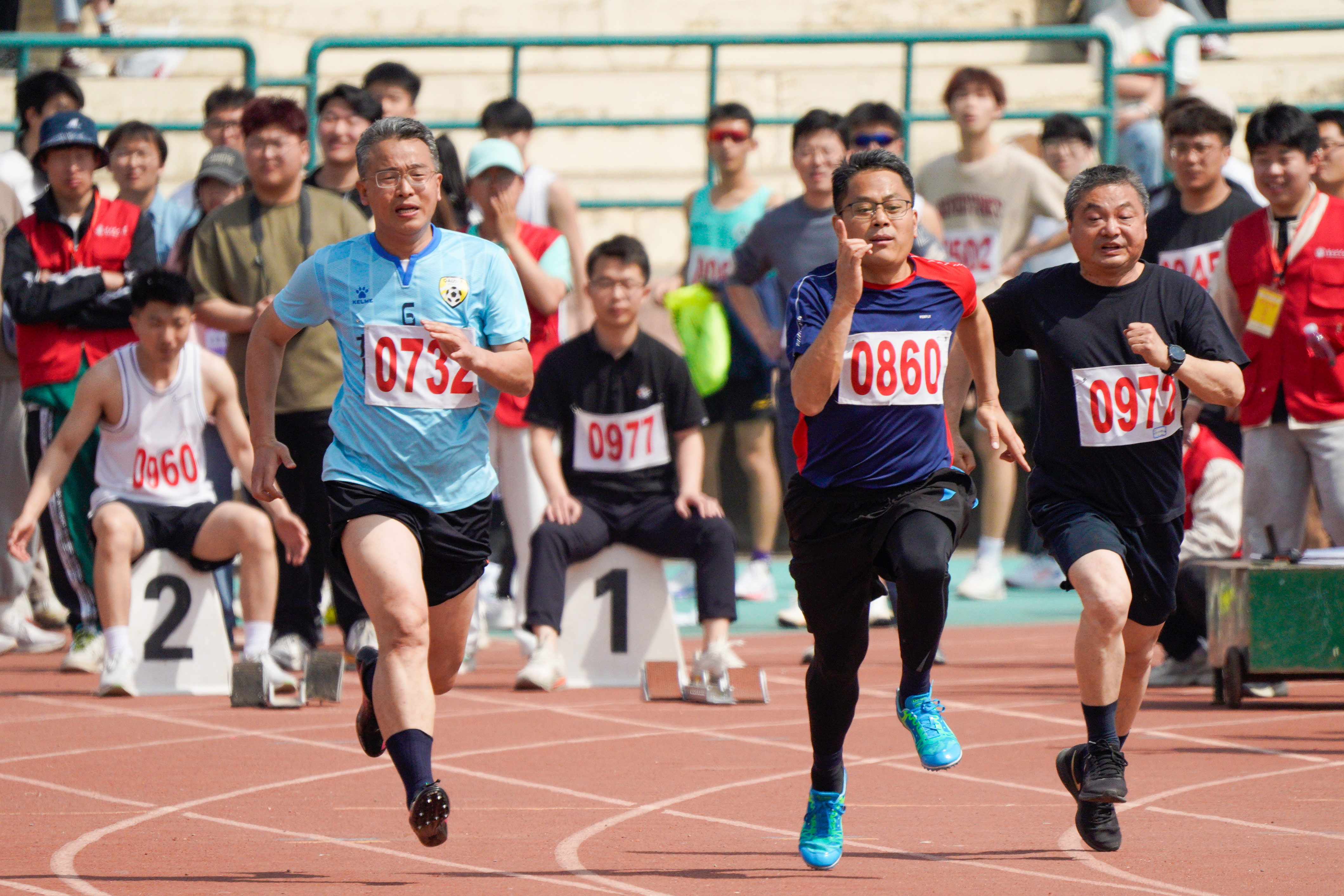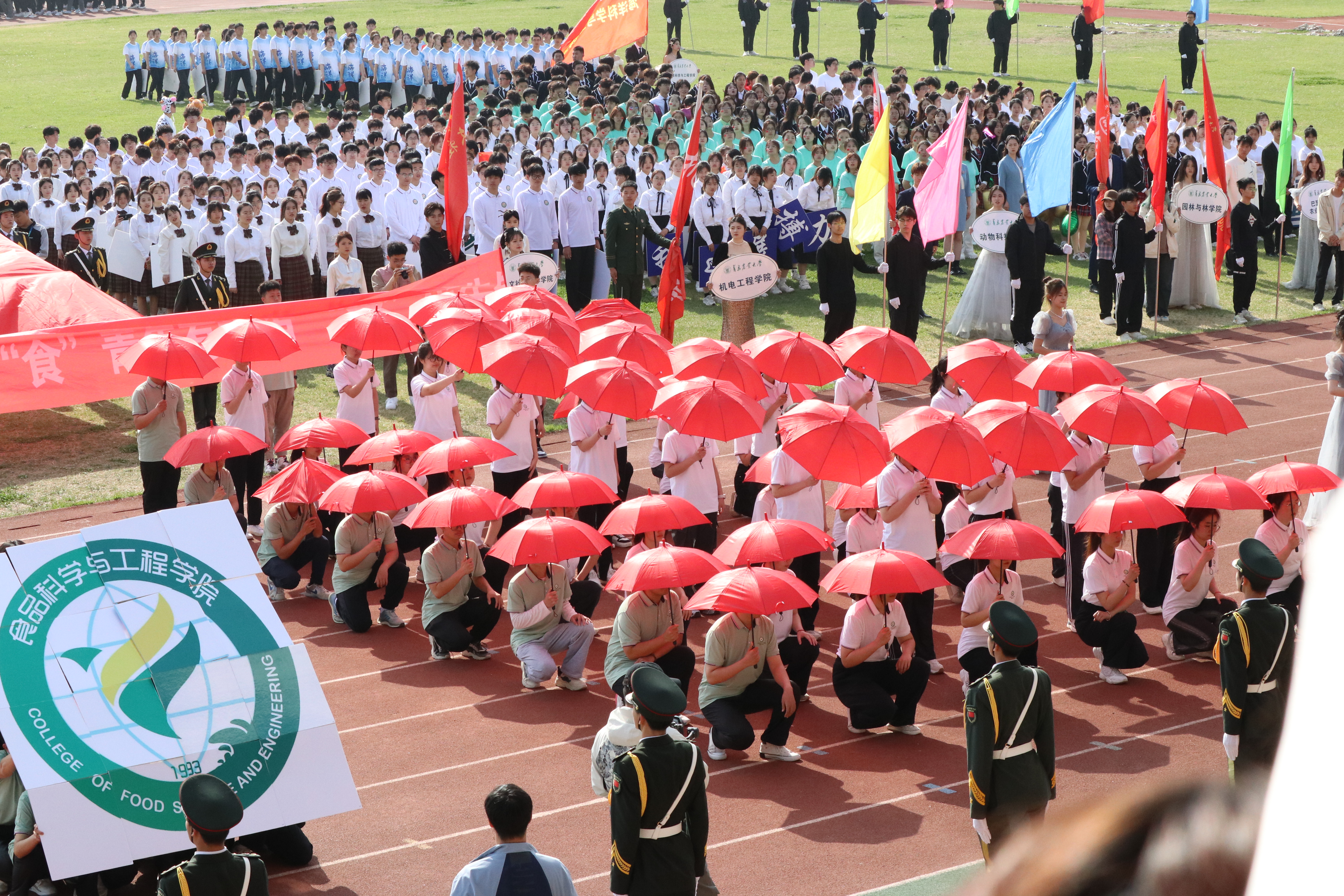 开幕式上,食品学院方阵手持红伞与展板,伴随着激昂的口号声与运动员进行曲,迈着整齐的步伐入场。旗帜飘扬,口号响亮,彰显出昂扬态势。他们手持红伞,用整齐划一的动作拼凑出1949-2024的字样,表达对新中国成立75周年的美好祝愿。在学院学生会与志愿服务中心组成的运动会工作人员的组织下,各项赛事紧张有序地进行着。塑胶跑道上,长跑运动员们咬牙坚持,挥洒汗水;绿茵操场旁,跳高运动员们身姿矫健,纵身一跃。台上的观众文明有序、摇旗助威,用呐喊与掌声鼓励运动员们挑战自我、追求卓越。在两天的比赛里,食品学子以强健的体魄证明自己堪当重任,青春的热血得以尽情挥洒,彰显出食品学子积极向上、团结合作的精神风貌和奋勇拼搏、持之以恒的体育精神。食品学院的声音一次又一次地响彻在五环体育场地上空,那不仅仅是激昂的口号,更是每一次成绩播报后的喜悦。一声又一声的加油,一次又一次的呐喊,绿茵场上运动健儿们伴随着此起彼伏的“食品,加油!”