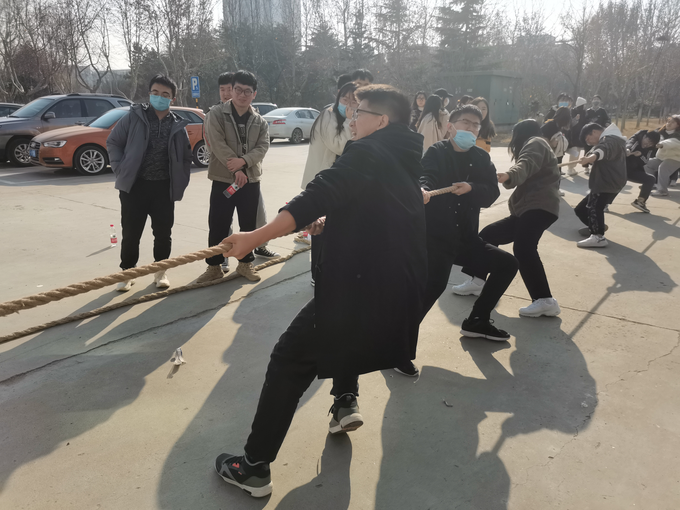 11月27日,太阳集团城娱8722于食品楼前举办“走下网络、走出宿舍、走向操场”主题拔河比赛。学院2020级、2021级(3+2)全体同学积极参加。