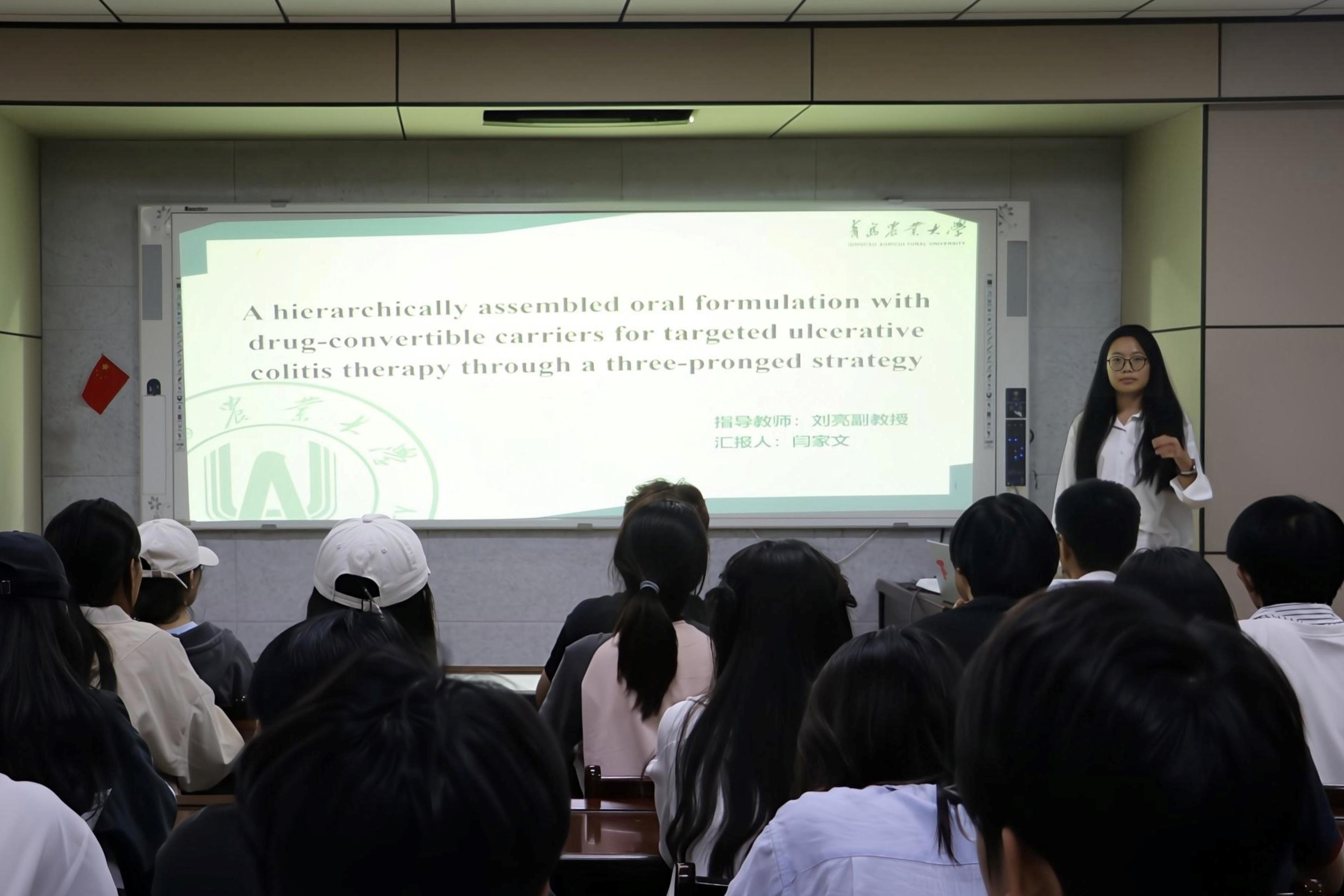 9月18日,食品学院在食品楼302举办第五十期“食学研讲”活动。本次活动由食品加工与安全专业24级研究生闫家文主讲,主题为“‘君臣佐使’理论启发的三靶点可转化载体口服制剂用于溃疡性结肠炎治疗”。2025级研究生新生积极参加。