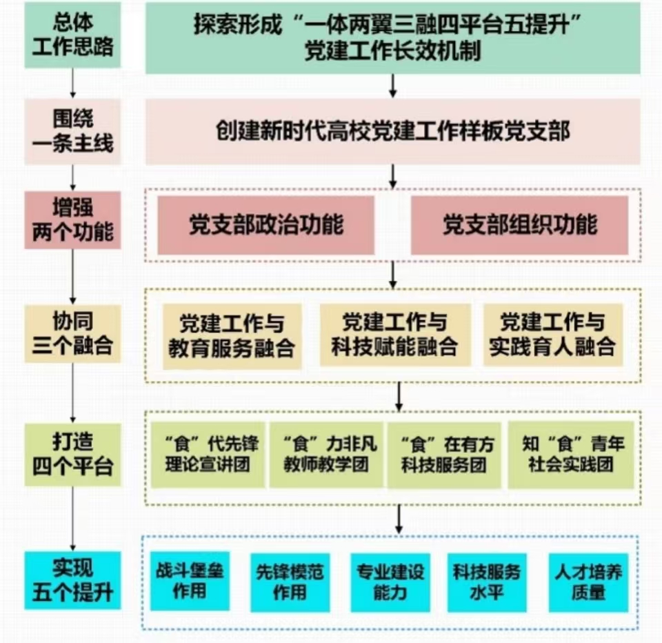 严格对标三次党代会提出“引导党员立足岗位争创一流,在推动学校高质量发展、联系服务师生中挑重担、当先锋、打头阵。”的工作要求,第一党支部结合学科专业特色,凝练“聚粮心·守粮安”,开展“党建+”项目建设,以“一问题、一目标、一方案”的形式,打造“食”代先锋理论宣讲团,建设“食”力非凡教师教学团队,组建“食”在有方科技服务团,成立知“食”青年社会实践团,探索形成“一体两翼三融合四平台五提升”15321党建工作长效机制,着力做到党建工作与潜心立德树人、强化学科专业、服务国家战略三个深度融合,着力发挥教师党支部战斗堡垒和党员先锋模范两个作用。近年来,支部先后获批山东省“双带头人”教师党支部书记工作室,荣获全国巾帼文明岗、山东省三八红旗集体、太阳集团网站8722五星党支部等荣誉。支部党员连续3年入选全球“高被引科学家”,3人连续入选2022、2023全球前2%顶尖科学家榜单。