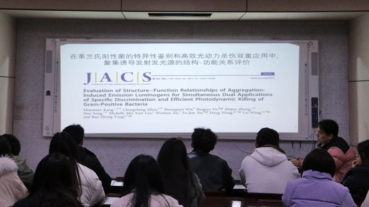3月20日,食品学院第三十九期“食学研讲”活动在食品楼302举办。本次活动由食品加工与安全专业24级研究生焦泳铭主讲,主题为“评价聚合诱导发光物质的结构-功能关系及其对革兰氏阳性菌的高效光动力杀灭研究”。报告聚焦新型抗菌材料的开发与应用,为在场同学解析了相关领域的研究进展。