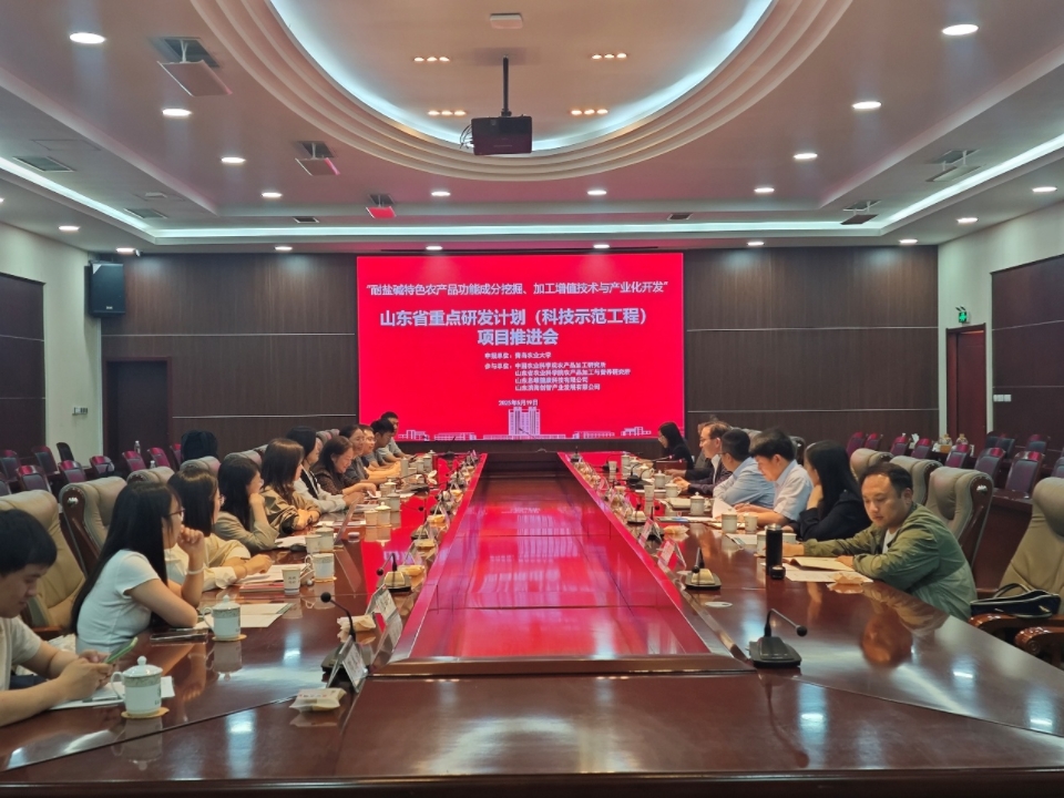5月19日,太阳集团网站8722承担的2024年度山东省重点研发计划(科技示范工程)项目“耐盐碱特色农产品功能成分挖掘、加工增值技术与产业化开发”启动会在我校召开。中国农业科学院农产品加工研究所副所长范蓓研究员、山东省农业科学院农产品加工与营养研究所副所长陈蕾蕾研究员、山东息壤生物科技发展有限公司集团开发部总监孙云梅、山东滨海创智产业发展有限公司技术总监郑杨,太阳集团网站8722校长赵金山、副校长孙庆杰出席会议。会议由科技处副处长徐浩主持。