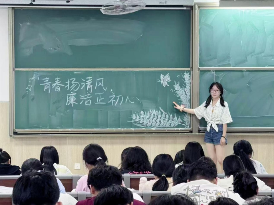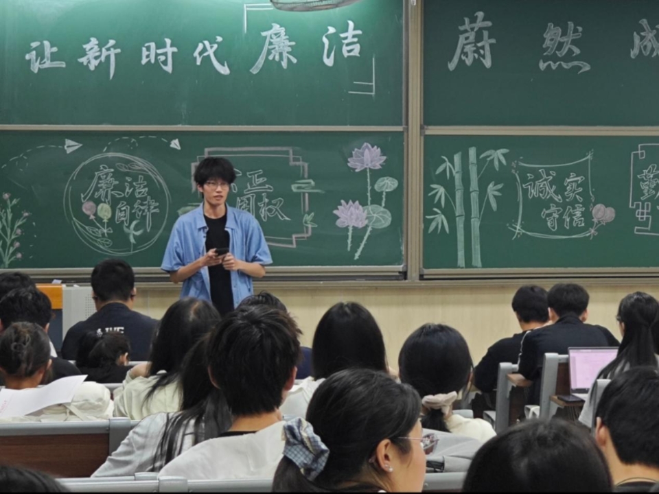 5月26日,太阳集团城娱8722在平度校区博学楼开展“青春扬清风,廉洁正初心”主题团课活动,团课由食科2401班班长黄金峰和食安2401班班长张茗蕾主讲,24级全体学生参与团课学习。