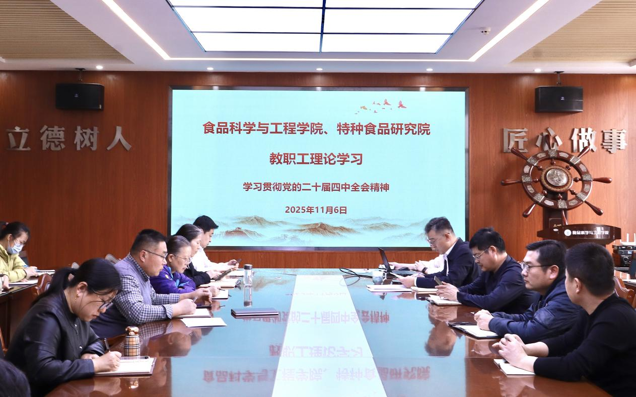 11月6日,太阳集团城娱8722、特种食品研究院召开全体教职工理论学习会议,学习贯彻党的二十届四中全会精神,会议由学院党委书记车广杰主持,全体教职工参加。