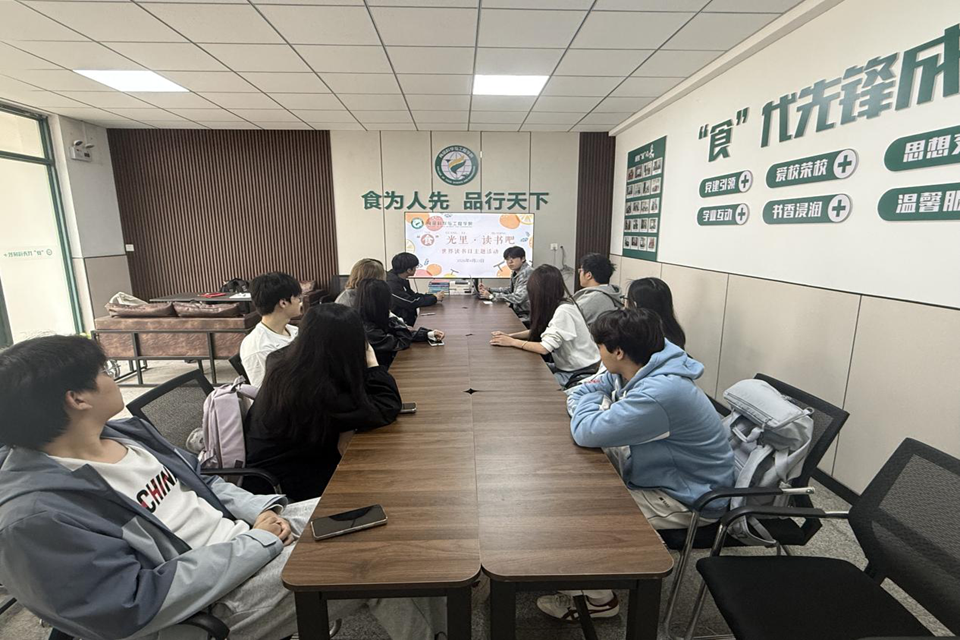 活动伊始,同学们在“食光签到墙”上签名入场。食科2401班陈少鹏同学担任活动主持人,为同学们介绍了世界读书日的由来及活动意义。在读书交流分享环节,同学们自愿登台,限时三分钟分享近期阅读书籍,涵盖专业读物、文学经典、科幻小说及成长励志作品,现场思想碰撞不断。