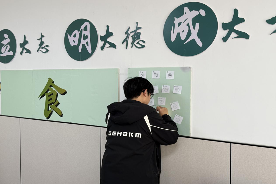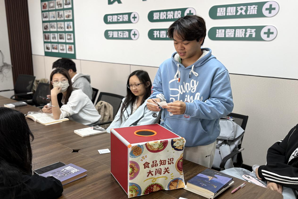 接着,在“食光留声”金句上墙环节中,每位同学在学院特制便利贴上写下自己最喜欢的一句话,将便利贴张贴在“分享墙”上。在“奇遇盲盒”互动游戏环节,参与者从装有“发酵”“深夜食堂”“理想”等关键词的“故事盲盒”中随机抽取三个词语,即兴串联成完整通顺的句子或故事。顺利完成挑战的同学获得精美奖品。