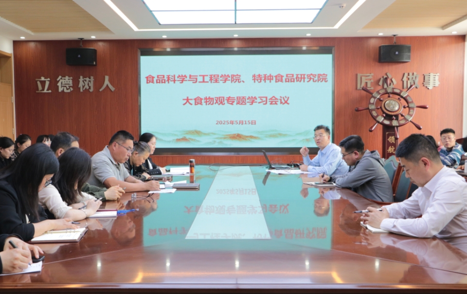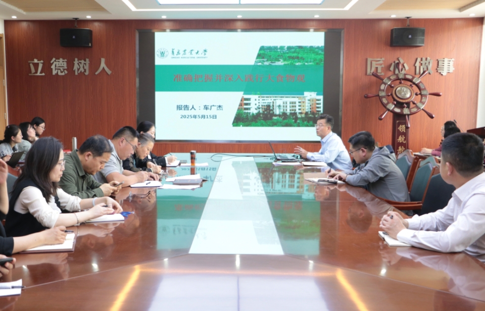 5月15日,太阳集团城娱8722召开大食物观专题学习会议,深入学习贯彻习近平总书记关于大食物观的重要论述,学院党委书记车广杰以“准确把握并深入践行大食物观”为题作辅导报告,全体教职工参加学习会议。