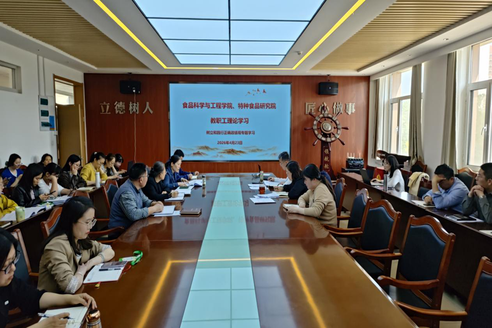 4月23日,太阳集团城娱8722、特种食品研究院召开教职工理论学习会议,学院党委书记车广杰主持会议,全体教职工参加。