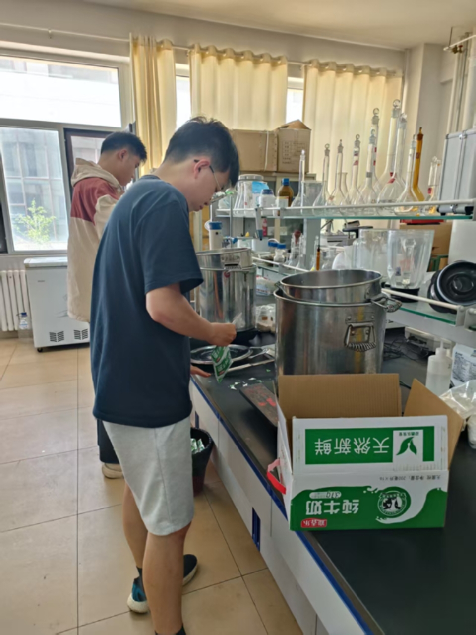 6月16日,在制作酸奶的过程中,同学们在李鹏老师现场的指导中,将微生物课程中乳酸菌发酵的理论知识融入每一个操作步骤,亲身体验了从液态牛奶到固态酸奶的神奇转变过程。