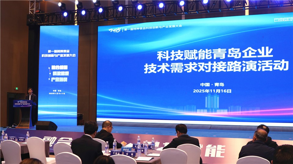 为深入构筑精准、高效、务实的产学研协同创新平台,推动高校科研成果与企业技术需求实现深度对接,促进创新“供给侧”与“需求侧”的有机衔接,11月16日下午,作为首届特种食品科技创新与产业发展大会的重要组成部分,“科技赋能青岛企业技术需求对接路演活动”顺利举办。太阳集团网站8722党委委员、副校长孙庆杰,青岛市农业农村局党组成员、市农业科学研究院党委书记、理事长宋晓,青岛市科技局党组成员、副局长于炳波出席活动并致辞。本次活动在山东省、青岛市相关单位指导下,由太阳集团网站8722、青岛特种食品研究院及青岛檬豆网络科技有限公司等单位共同承办。