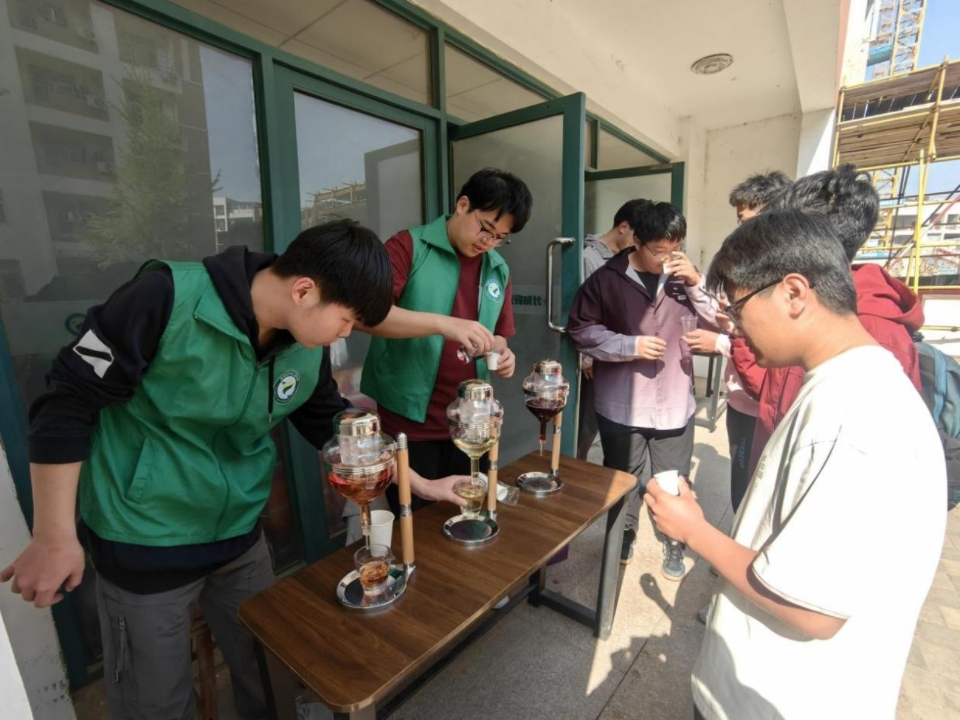 活动分为室内交流品鉴和室外开放式摊位两个部分。在室内,志愿者们为同学们详细讲解了葡萄酒酿造工艺的演变和风味品鉴的专业技巧,让同学们对葡萄酒文化有了系统认知。室外开放式摊位为过往的同学们提供一次性品鉴纸杯,供同学们进行品鉴。活动现场,同学们积极交流葡萄酒文化,现场气氛热烈。